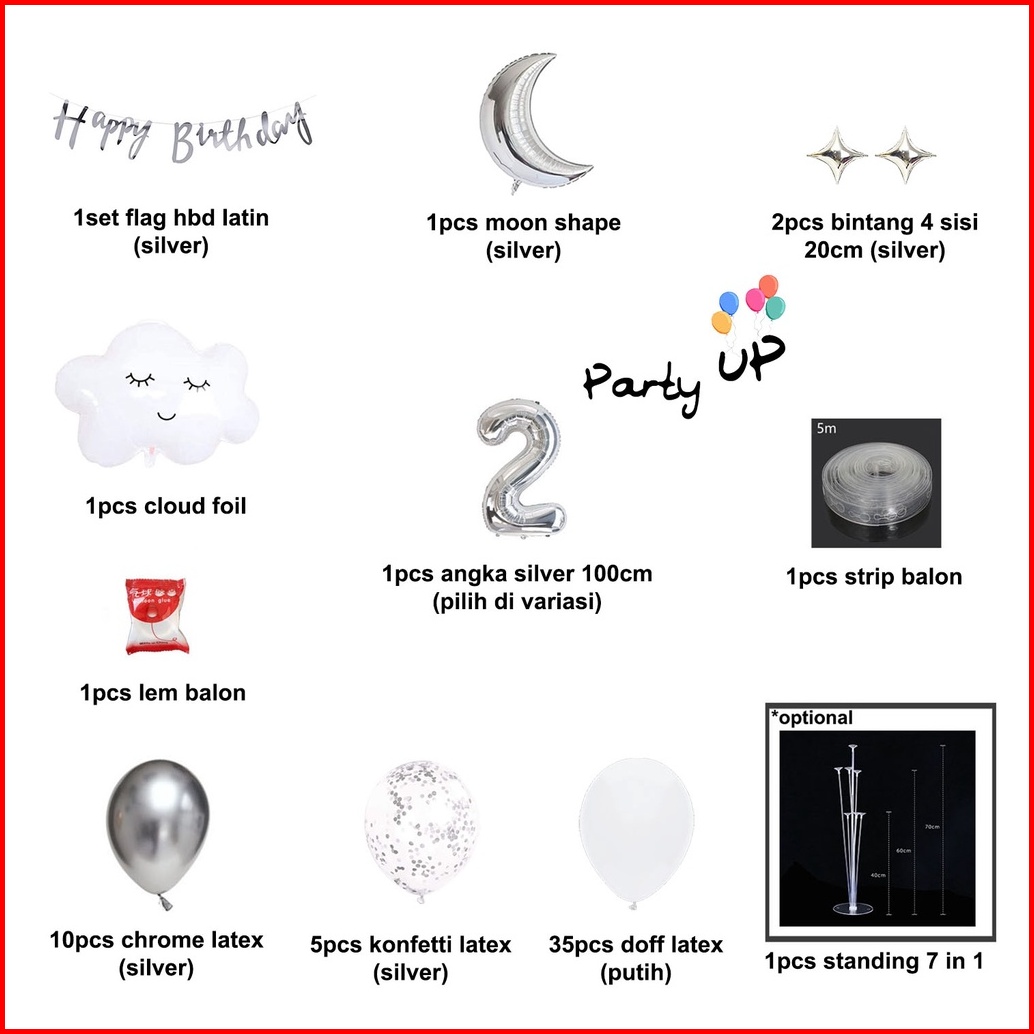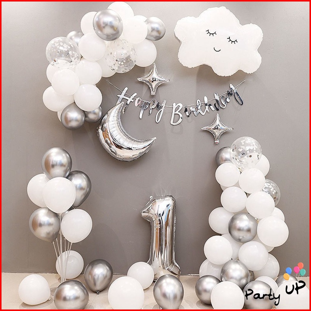 Arch Set Latin Flag Moon Star Silver White Balloon Decoration