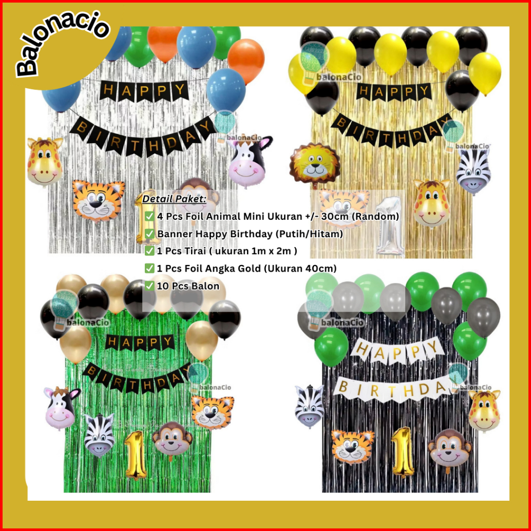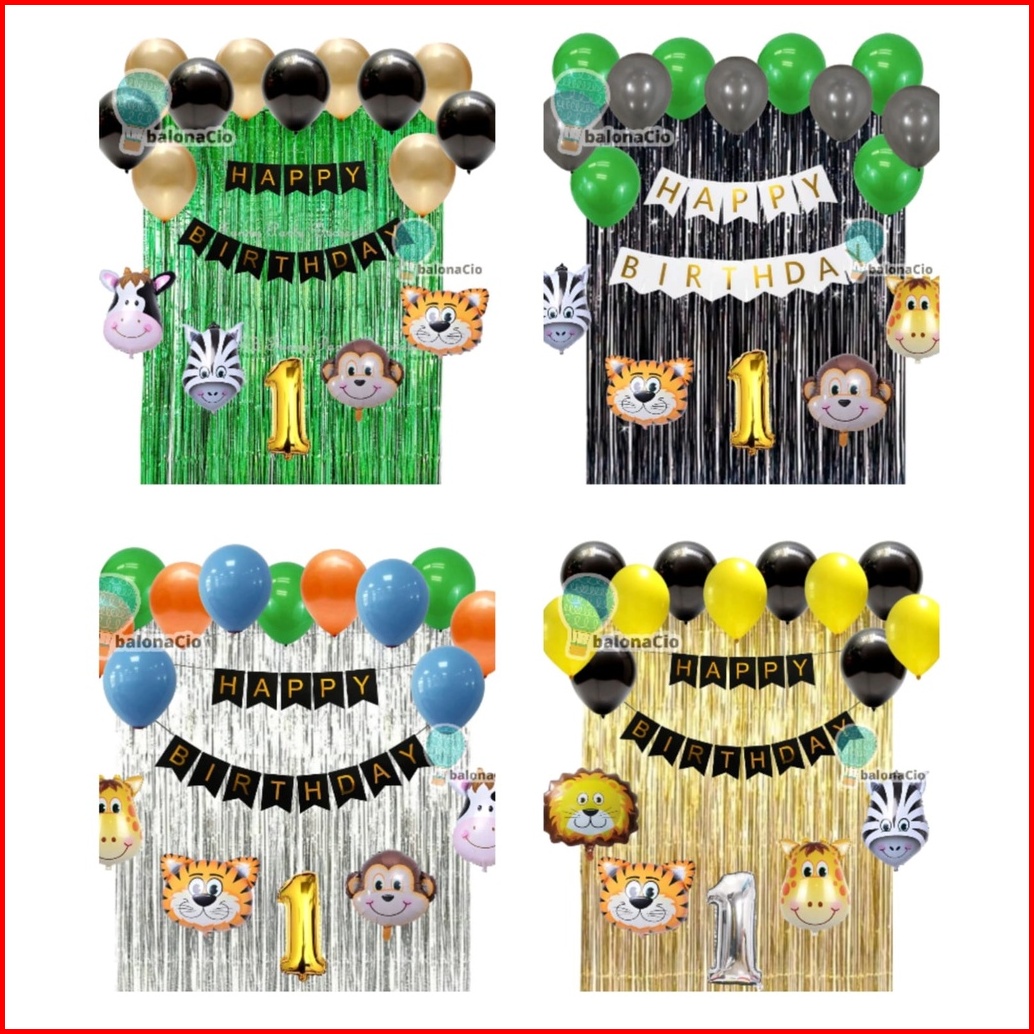 Paket Set Dekorasi Ulang Tahun Tema Binatang Mini 02 Happy Birthday Set Animal