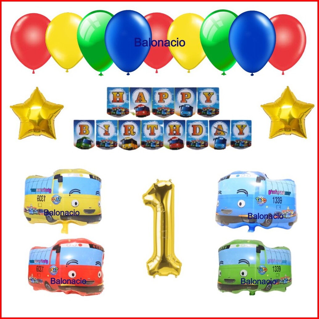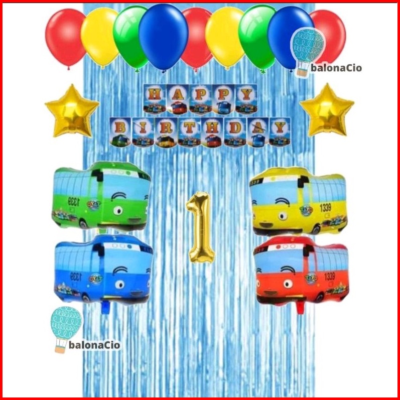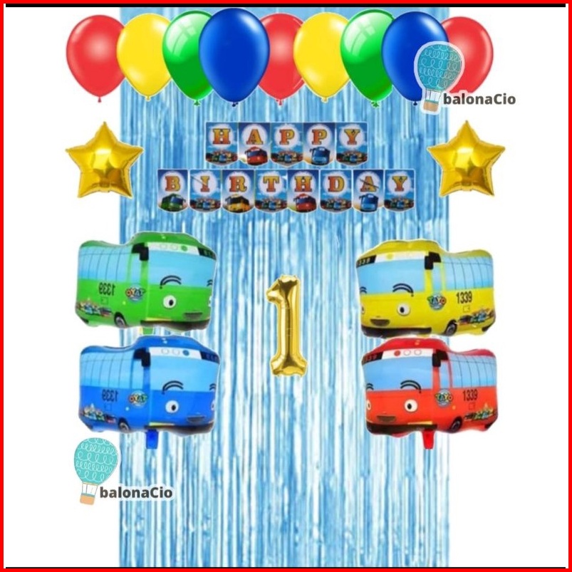 Paket Set Dekorasi Ulang Tahun Tema Bus Warna Warni