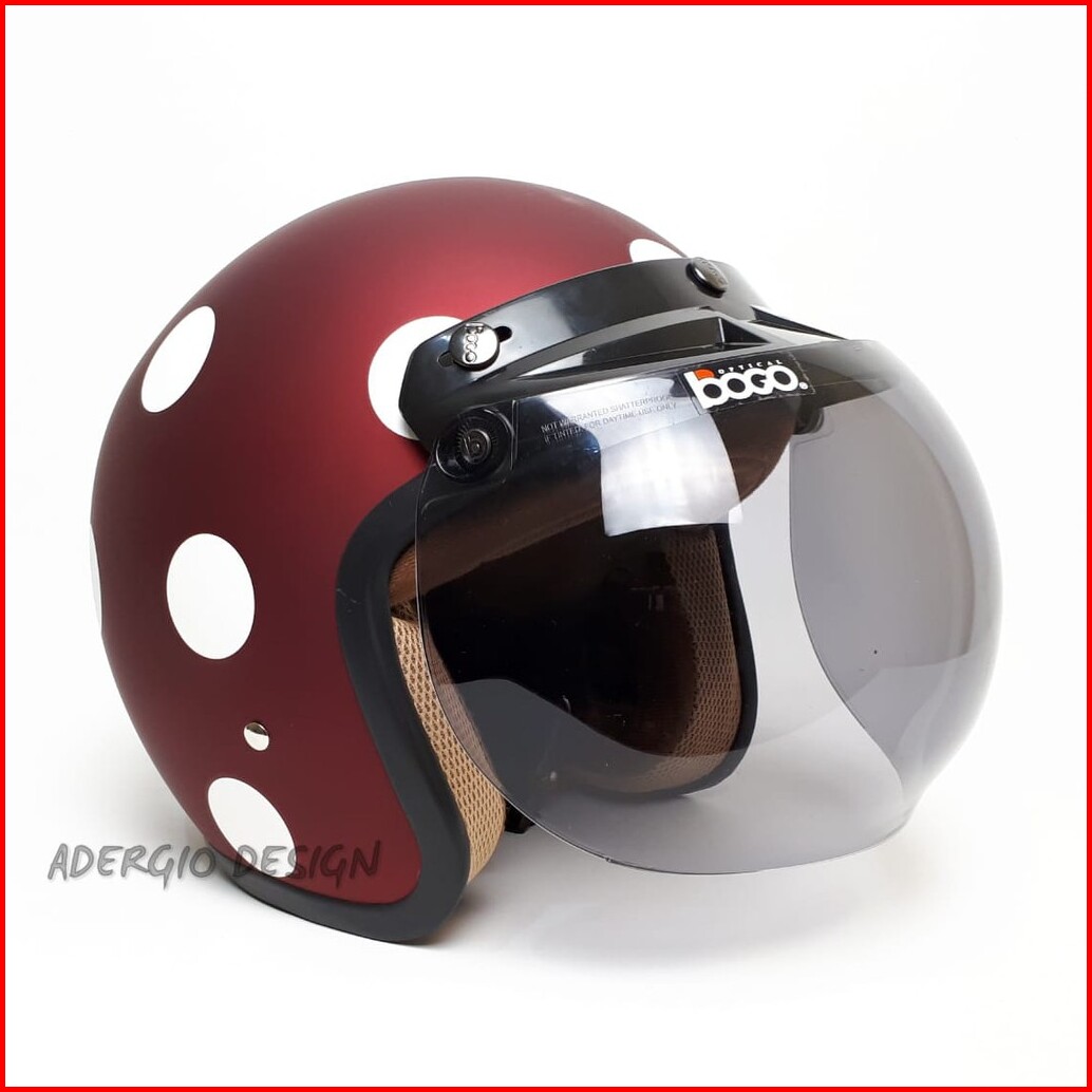 Helm Bogo Dewasa Kaca Bogo Ori Full Leher Sni Motif Simple Polkadot Vespa
