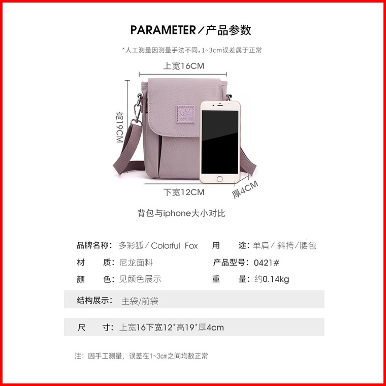 Tas Selempang Wanita Mini Colorful Fox Sling Bag Fashion Korean Style Ukuran Kompak Warna Soft Pastel Ringan Serbaguna U