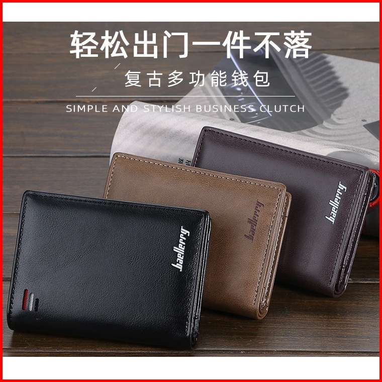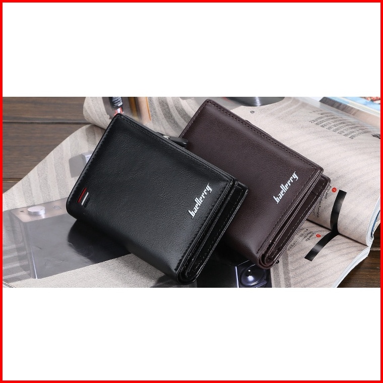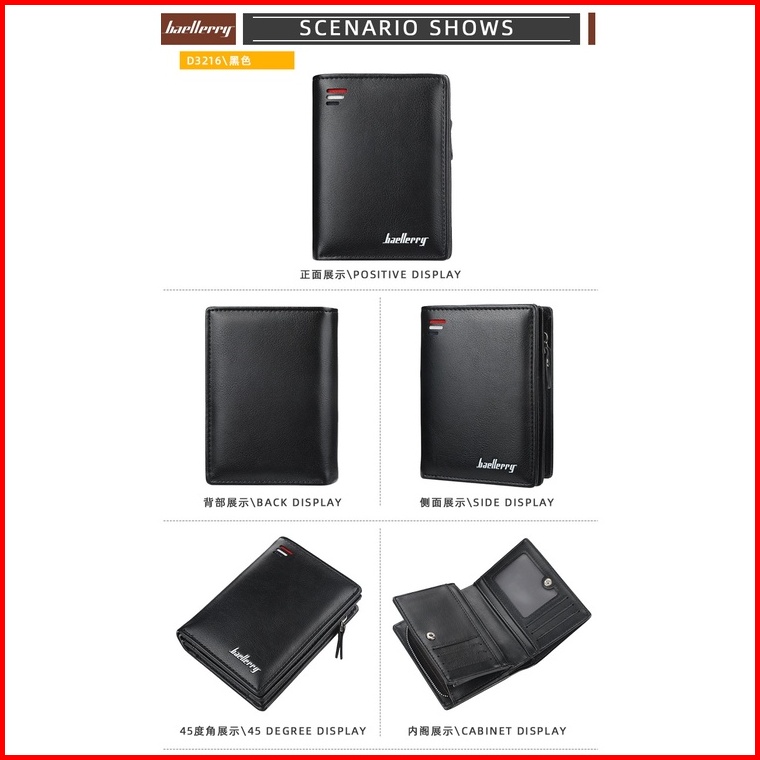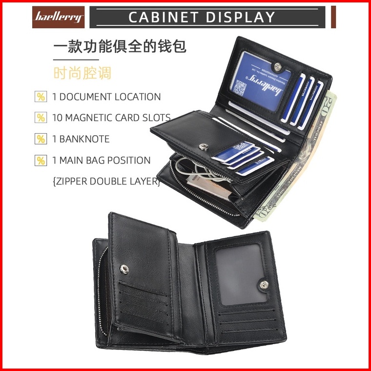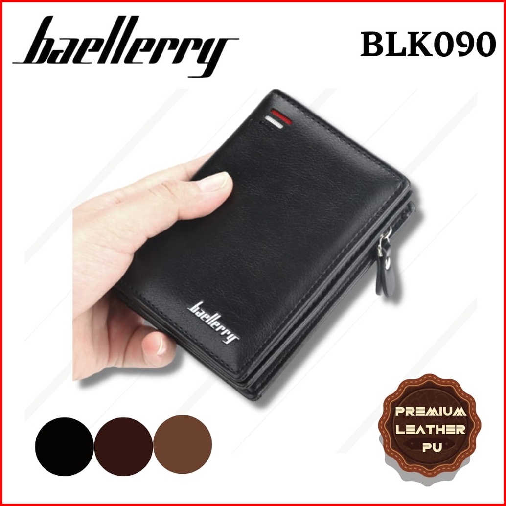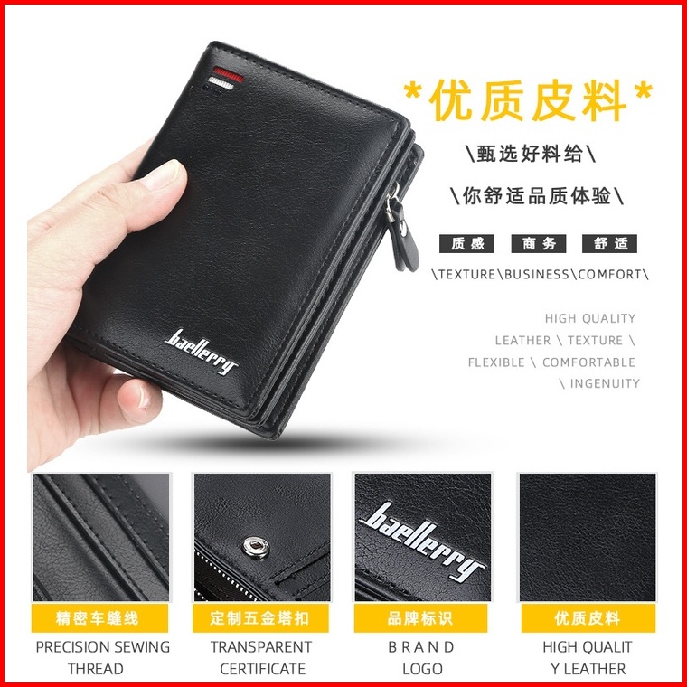 Dompet Lipat Pria Kulit Pu Premium Baellerry - Banyak Slot Kartu Tempat Uang Zipper Koin Desain Ringkas Stylish Cocok Un