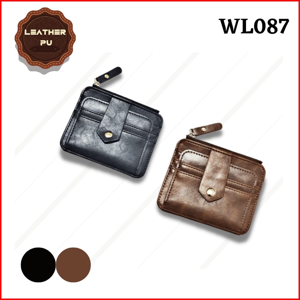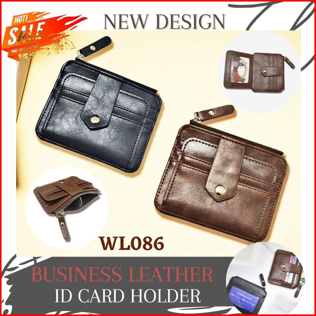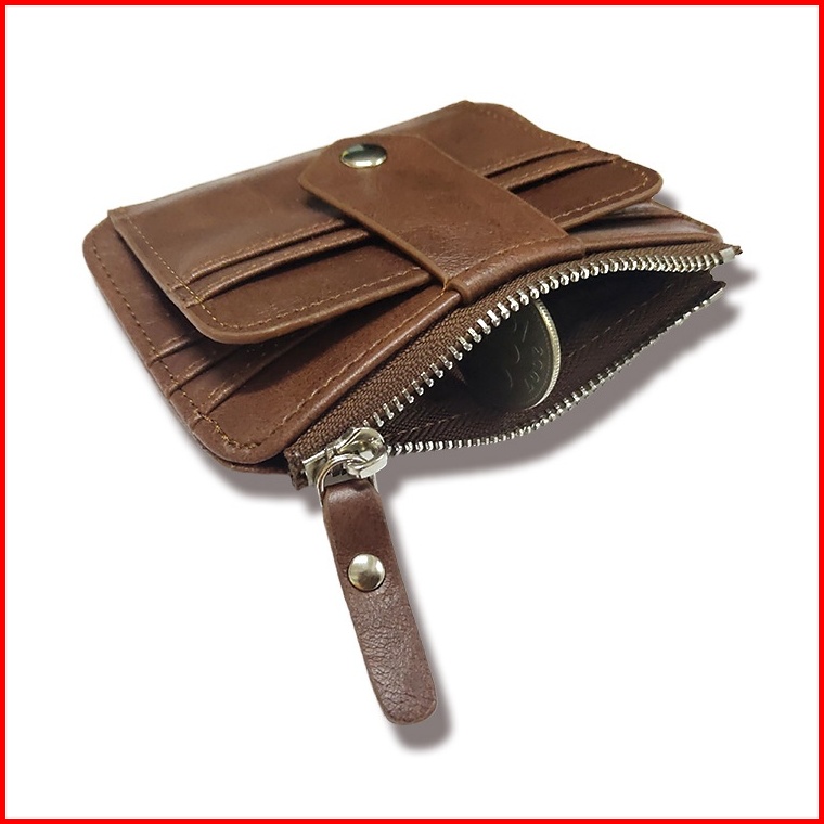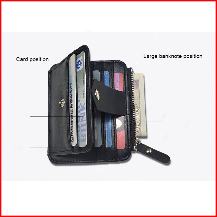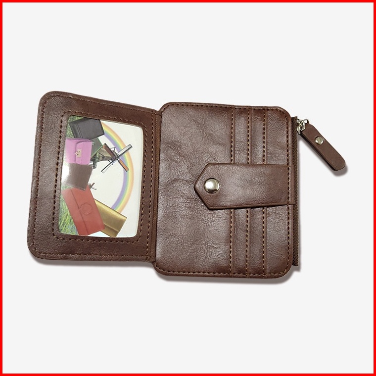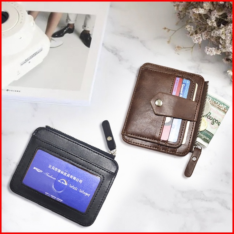 Dompet Mini Pria Wanita Kulit Pu Slim Card Holder Dengan Resleting Slot Kartu Transparan Model Lipat Ringkas Untuk Uang