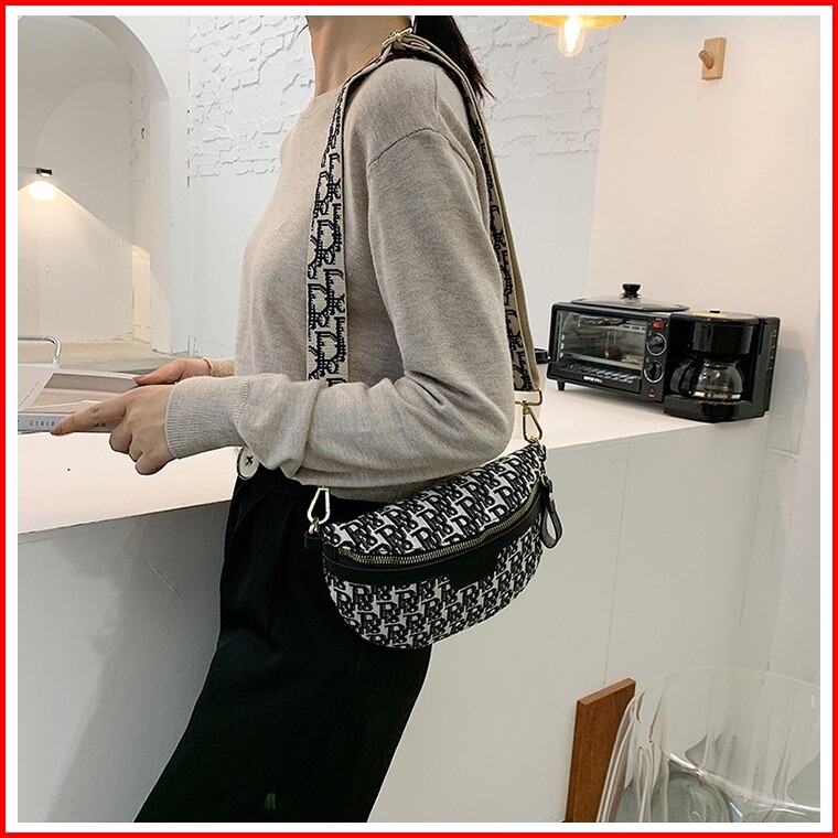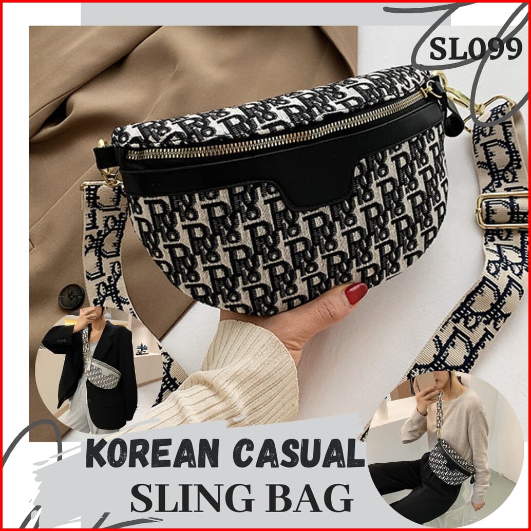 Tas Selempang Wanita Korean Casual Sling Bag Motif Monogram Elegan Adjustable Strap Lebar Kompartemen Luas Sl099