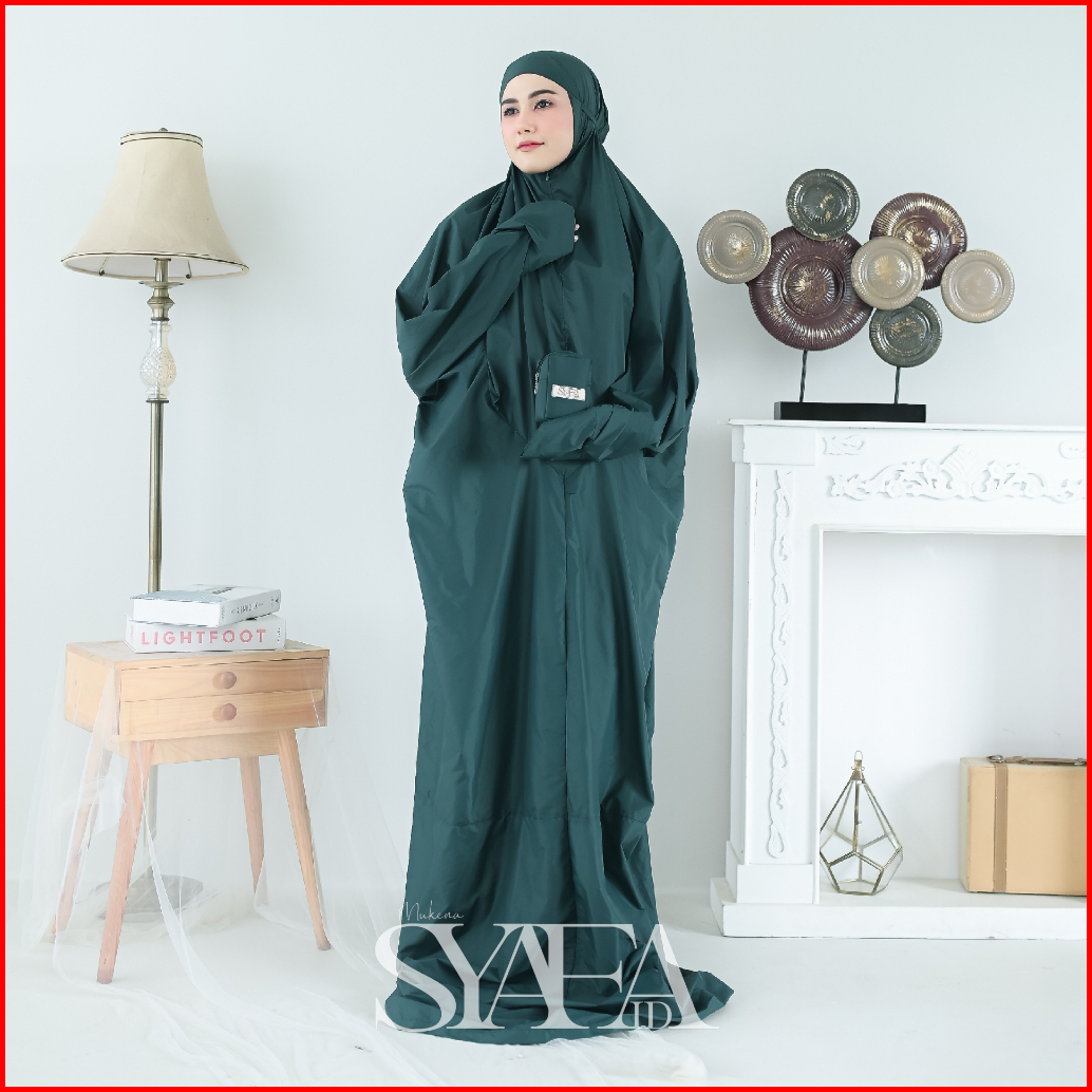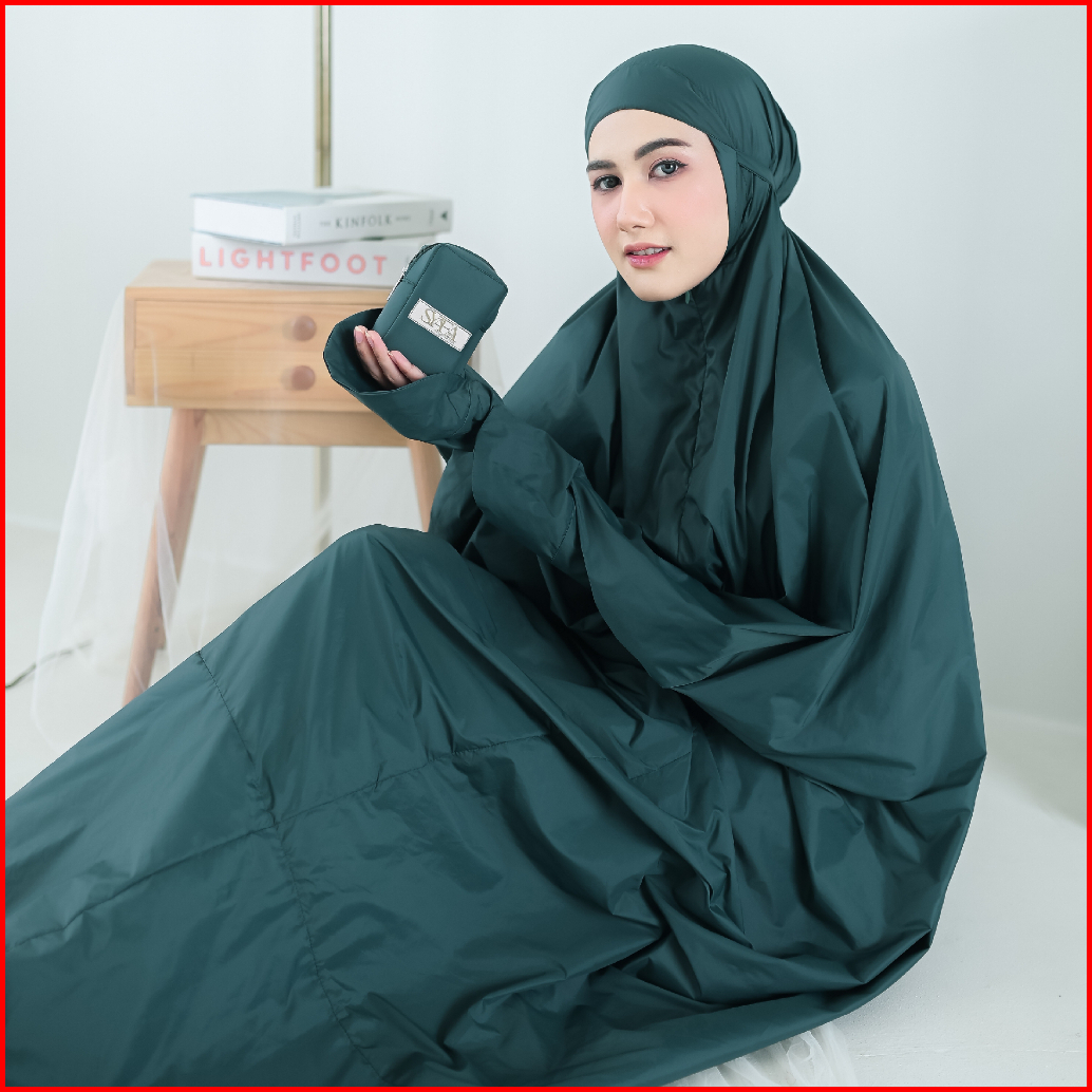 Mukena Terusan Traveling Mini Pouch Terkecil 2 In 1 Dewasa Parasut Korea Premium