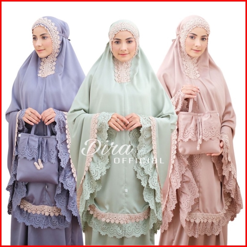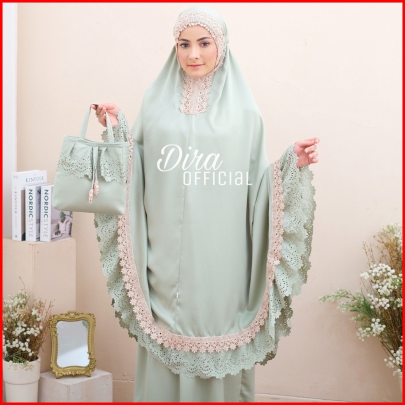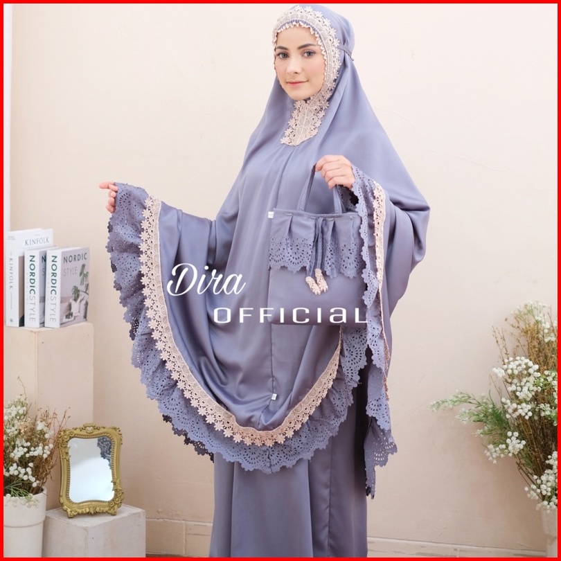 Dira - Mukena Dewasa Jumbo Mewah Premium Daily Laser Cut Renda Susun