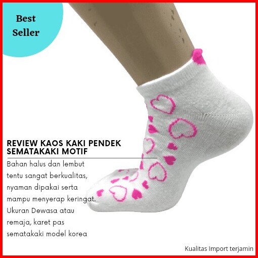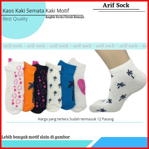 12 Pasang Kaos Kaus Kaki Pendek Mata Kaki Semata Kaki Motif Wanita Perempuan Remaja Dewasa