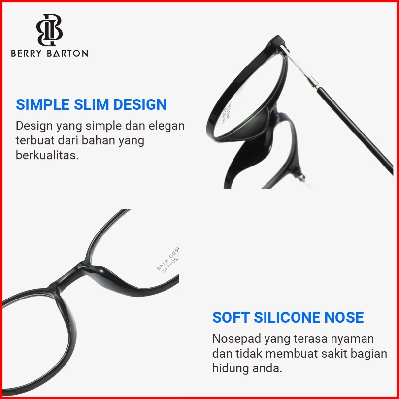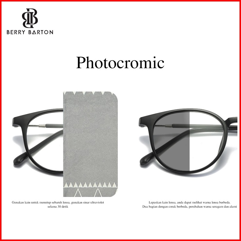Berrybarton - Kacamata Bulat Pelajar Modern Bisa Minus Photocromic Blueray 8148