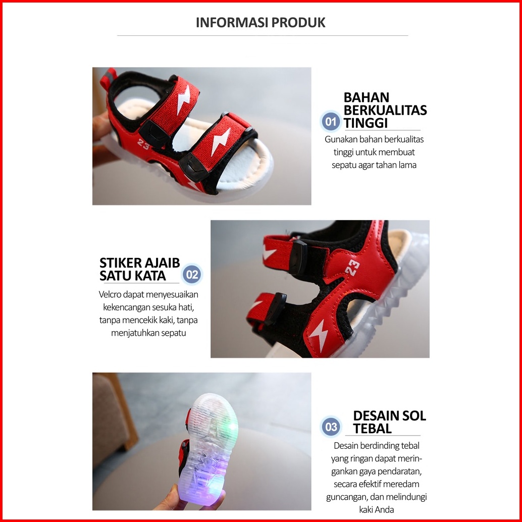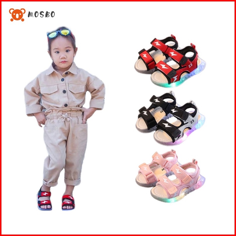 Mosbo Sepatu Led Anak Laki Laki Sepatu Lampu Anak Laki Laki Led Sepatu Sandal Led Motif Lighting Thunder Baru Mbk42