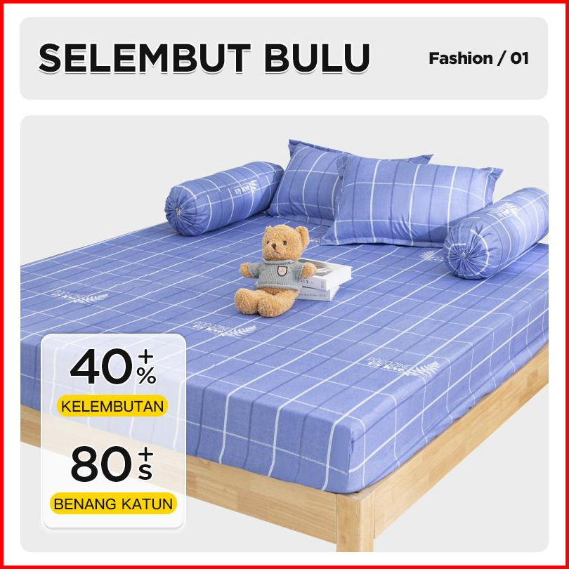 Sprei Kasur Kamar Tidur Lembut Motif Kotak Aesthetic Seprai Ukuran 180x200 Cm