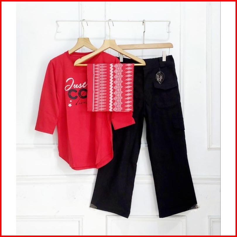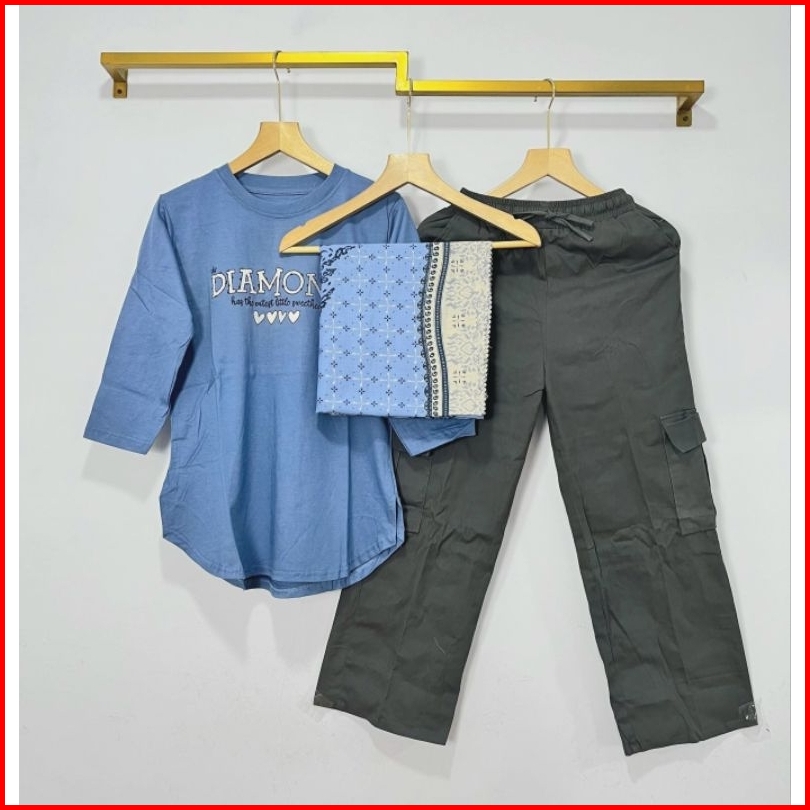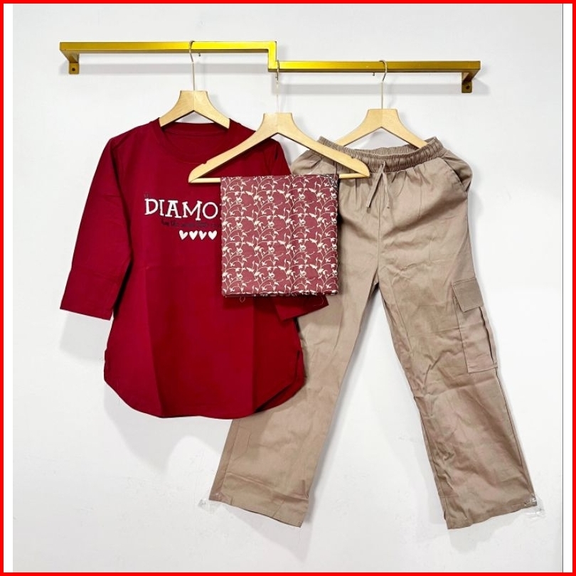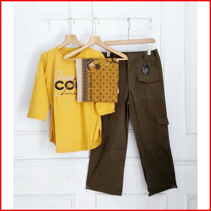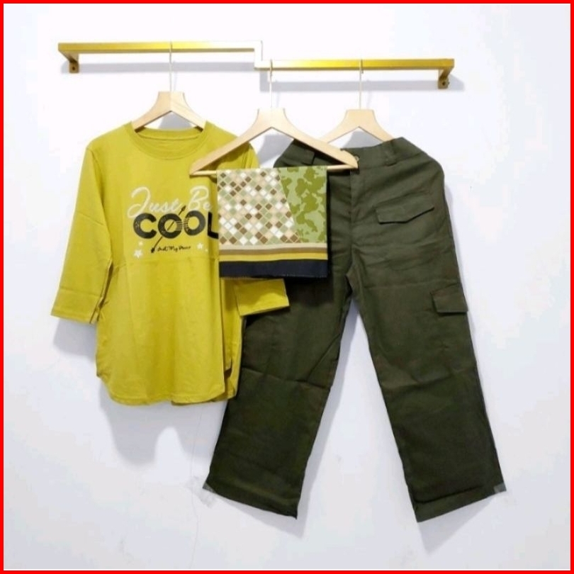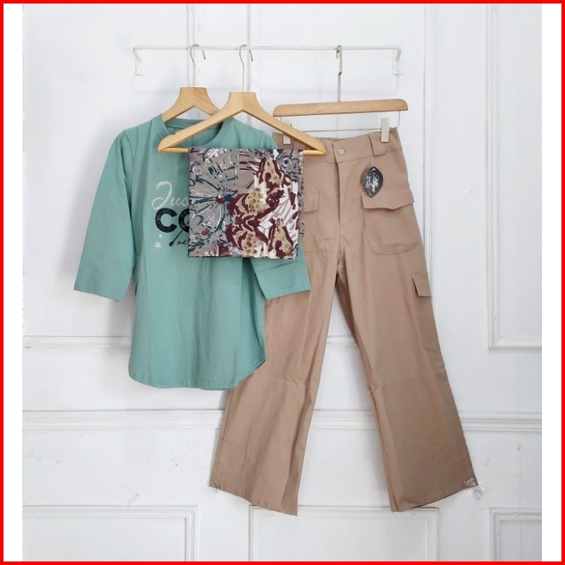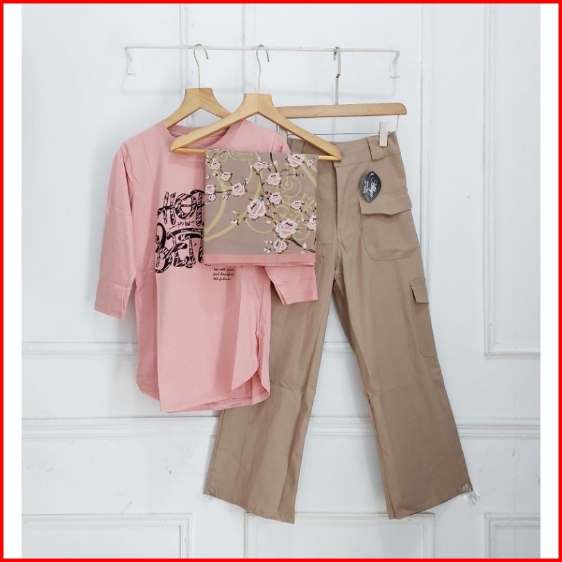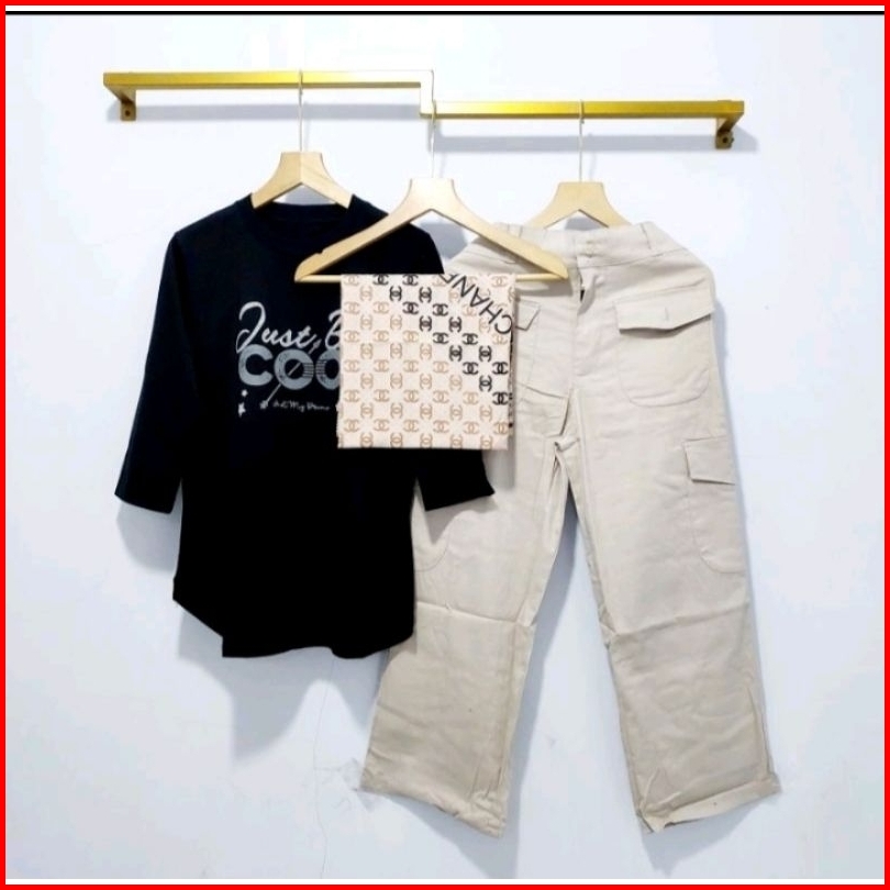 Setelan Wanita Kekinian 3in1 Hemat Celana Cargo Set Kaos Combed 20s Set Wanita Cargo Cinos