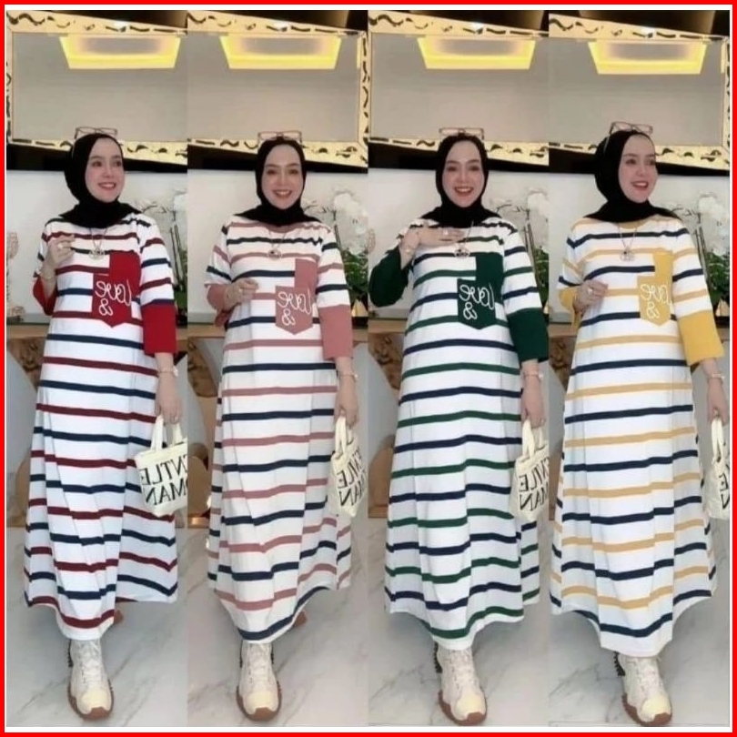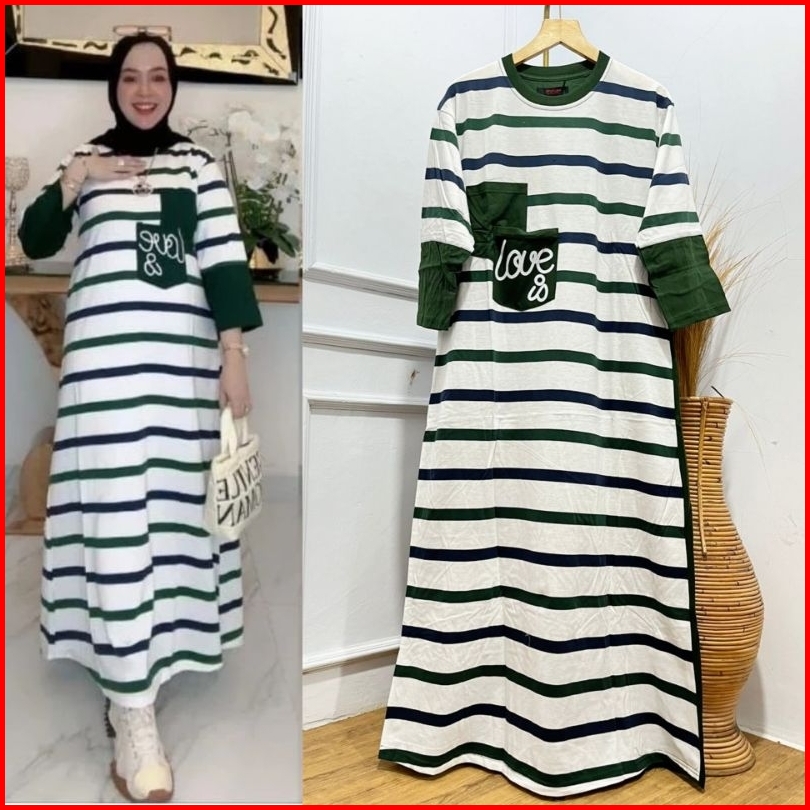 Gamis Salur Model Baru Love Kekinian Dress Salur Wanita Gamis Salur Kaos Combed 20s Mix Cvc