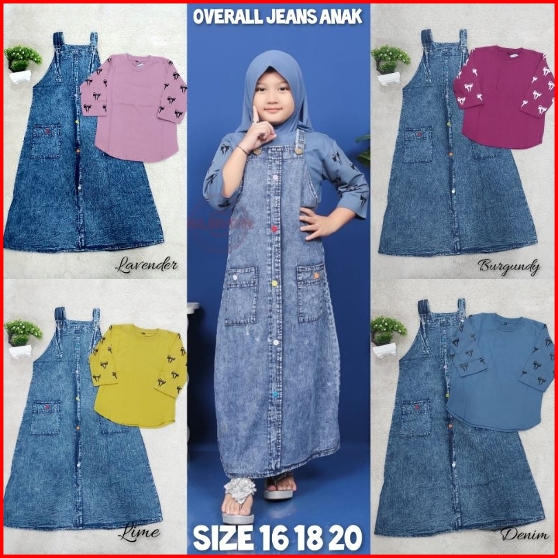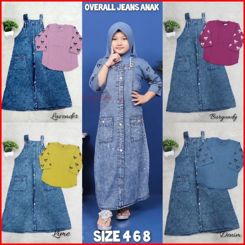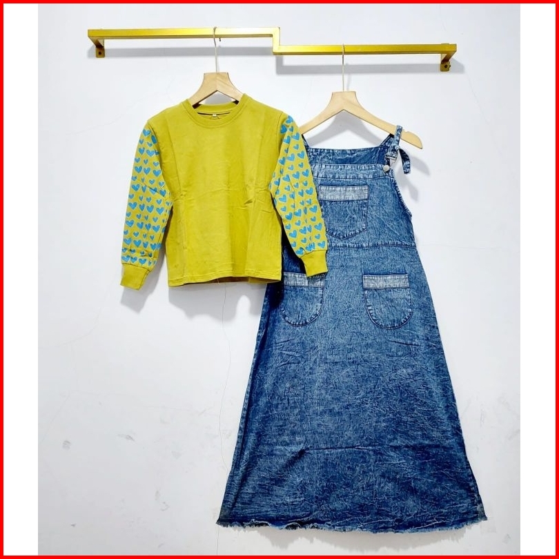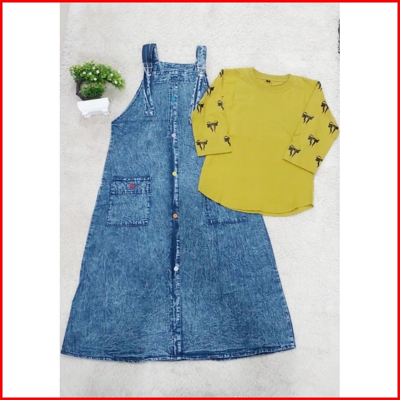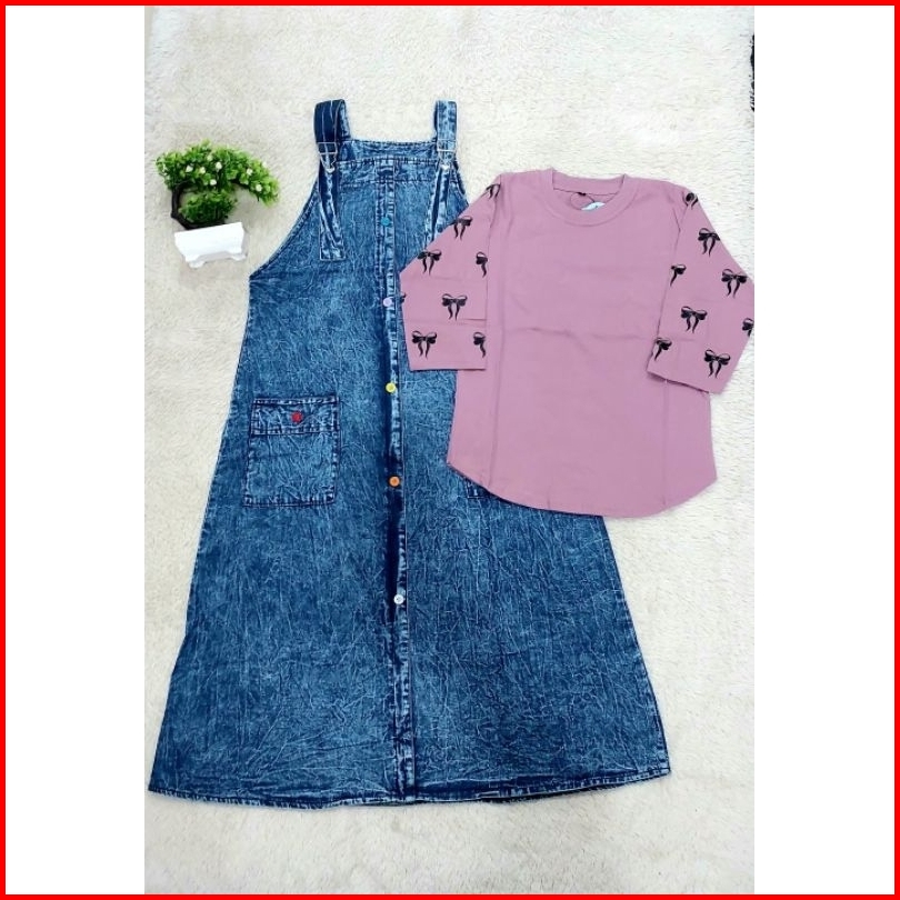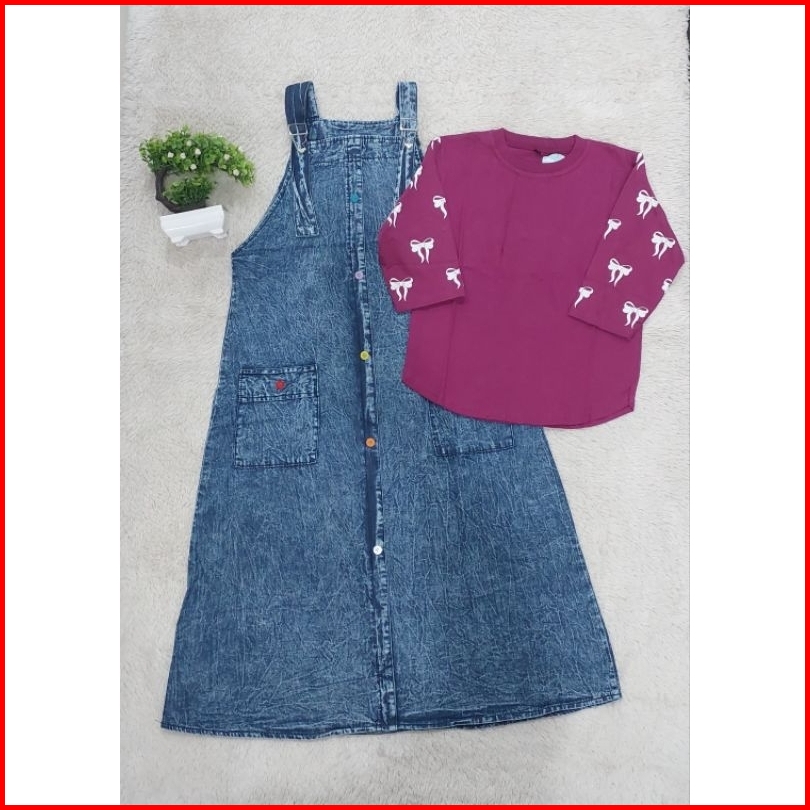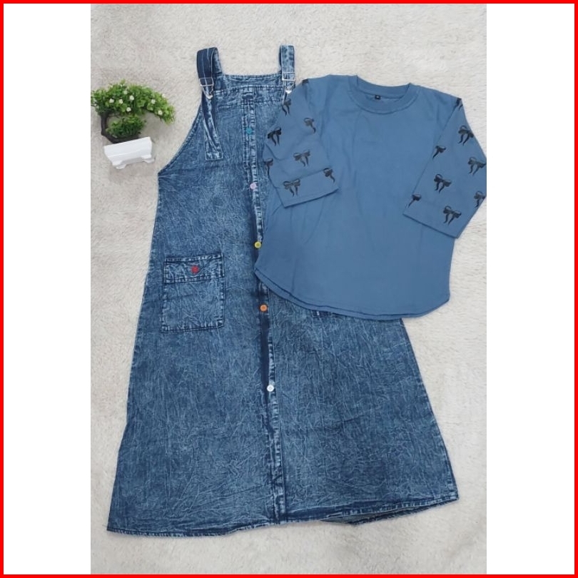Overall Jeans Set Kaos Combed Anak Size Kecil Sedang Tanggung