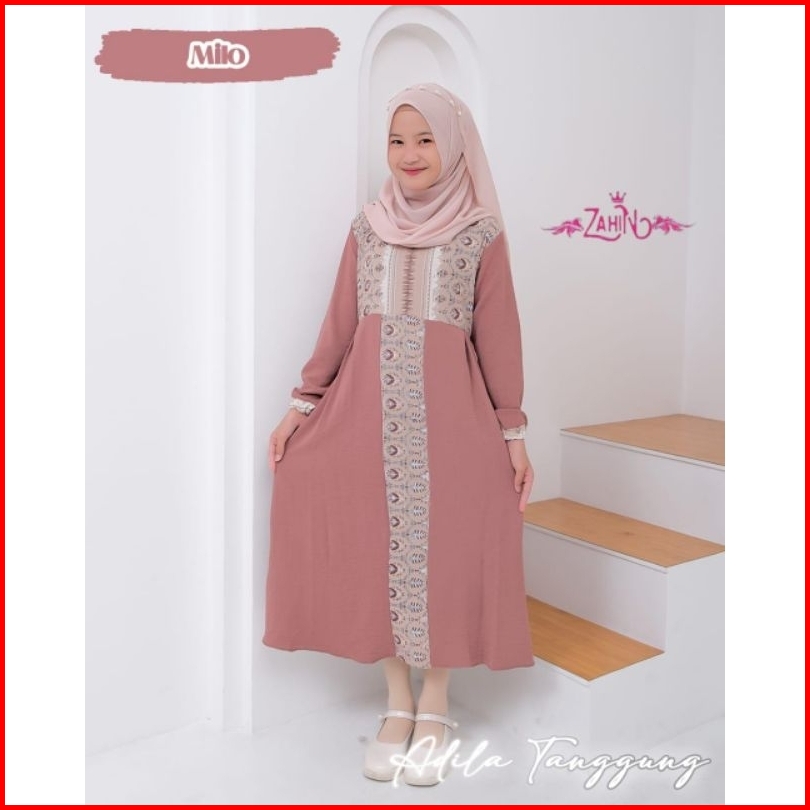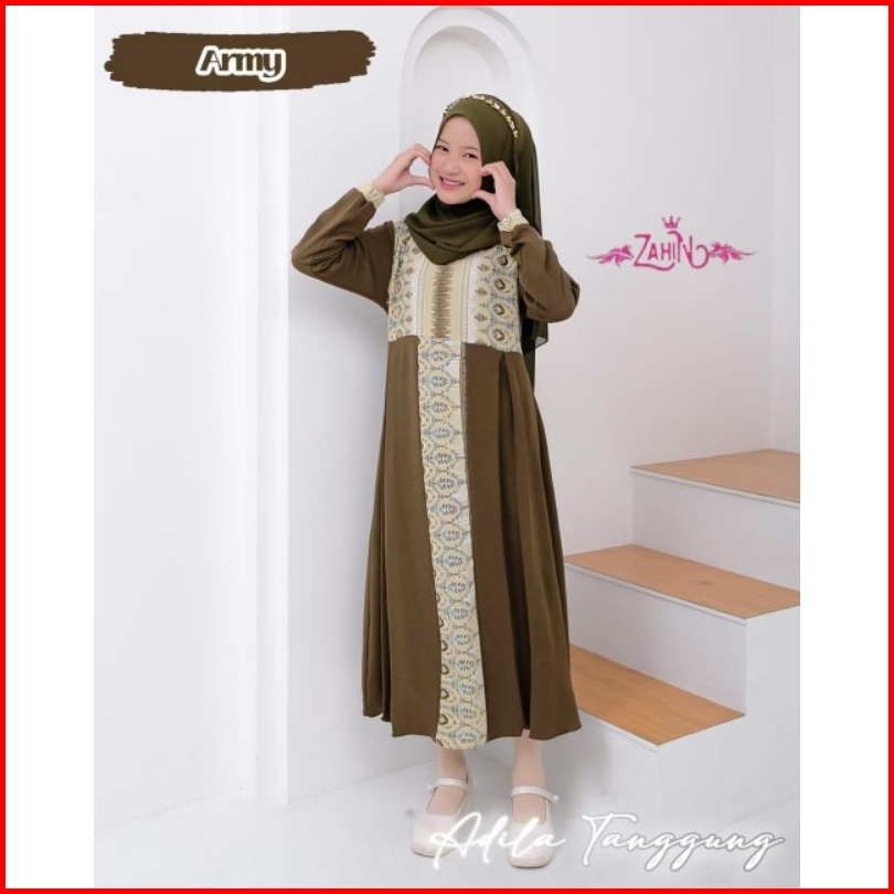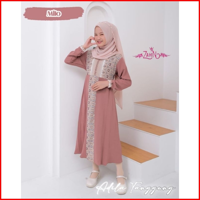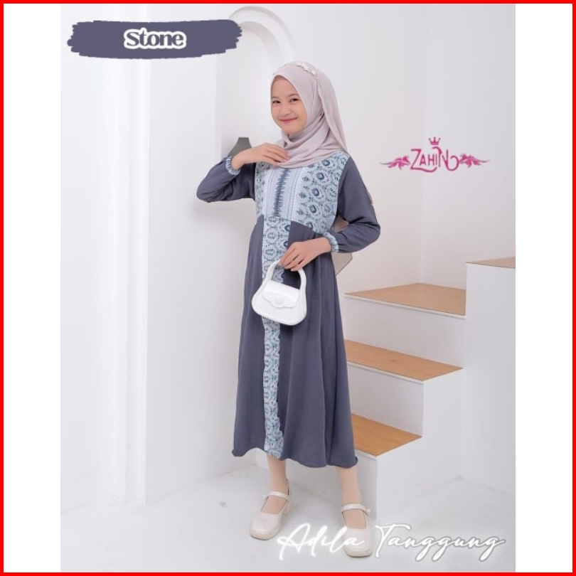 Adila Dress Ori By Zahin Matt Crinkle Air Flow Dress Anak Zahin Ori Gamis Anak Tanggung