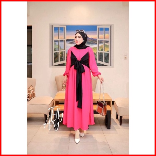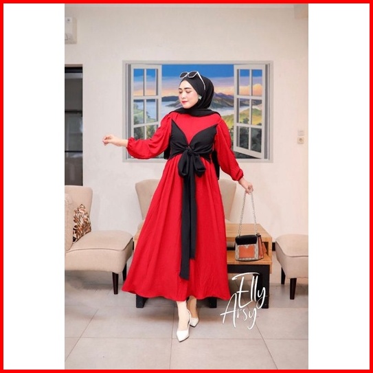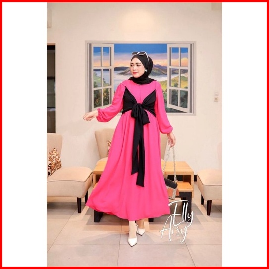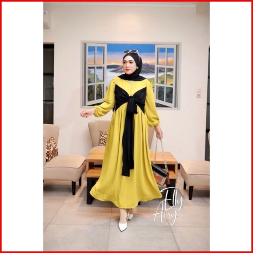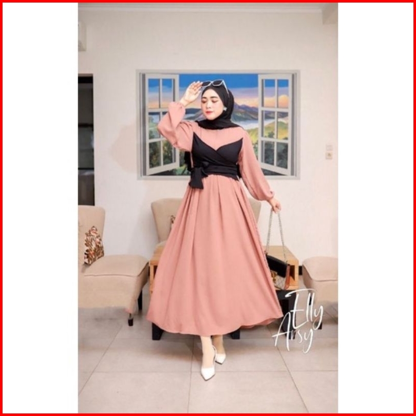 Midi Dress Crinkle Elly Arsyi Kekinian Midi Wanita