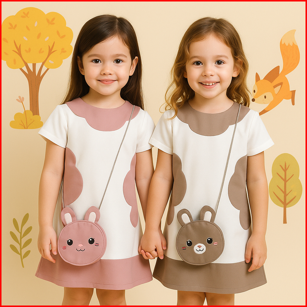 Two Mix - Baju Dress Anak Perempuan Mini Kelinci Kaos Scuba Tas Lucu 1-8 Tahun 4231