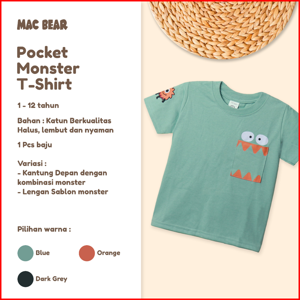 Macbear Baju Anak-remaja Laki-laki Kaos Anak-remaja Monster Collection Pocket Monster 6 Bulan - 12 Tahun