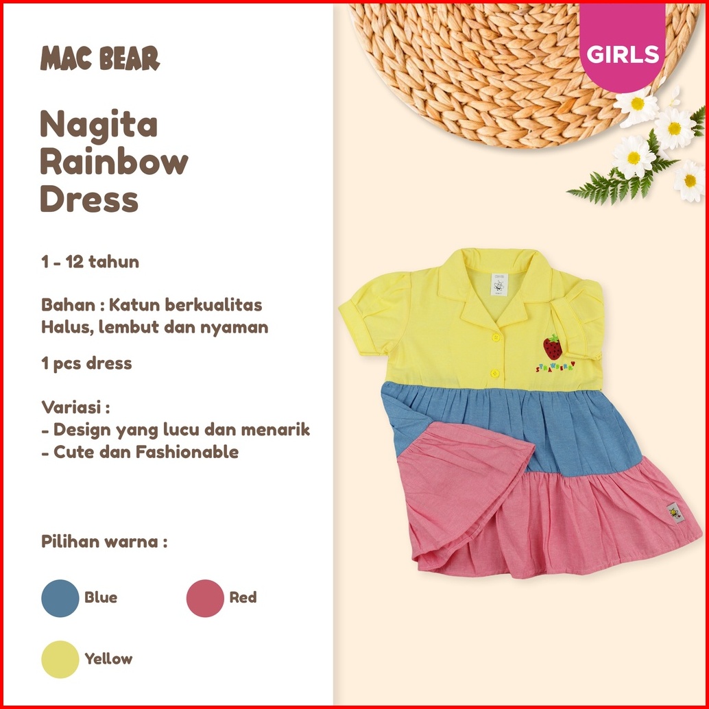 Macbee Baju Anak Perempuan Dress Nagita Collection Rainbow Strawberry 6 Bulan - 12 Tahun