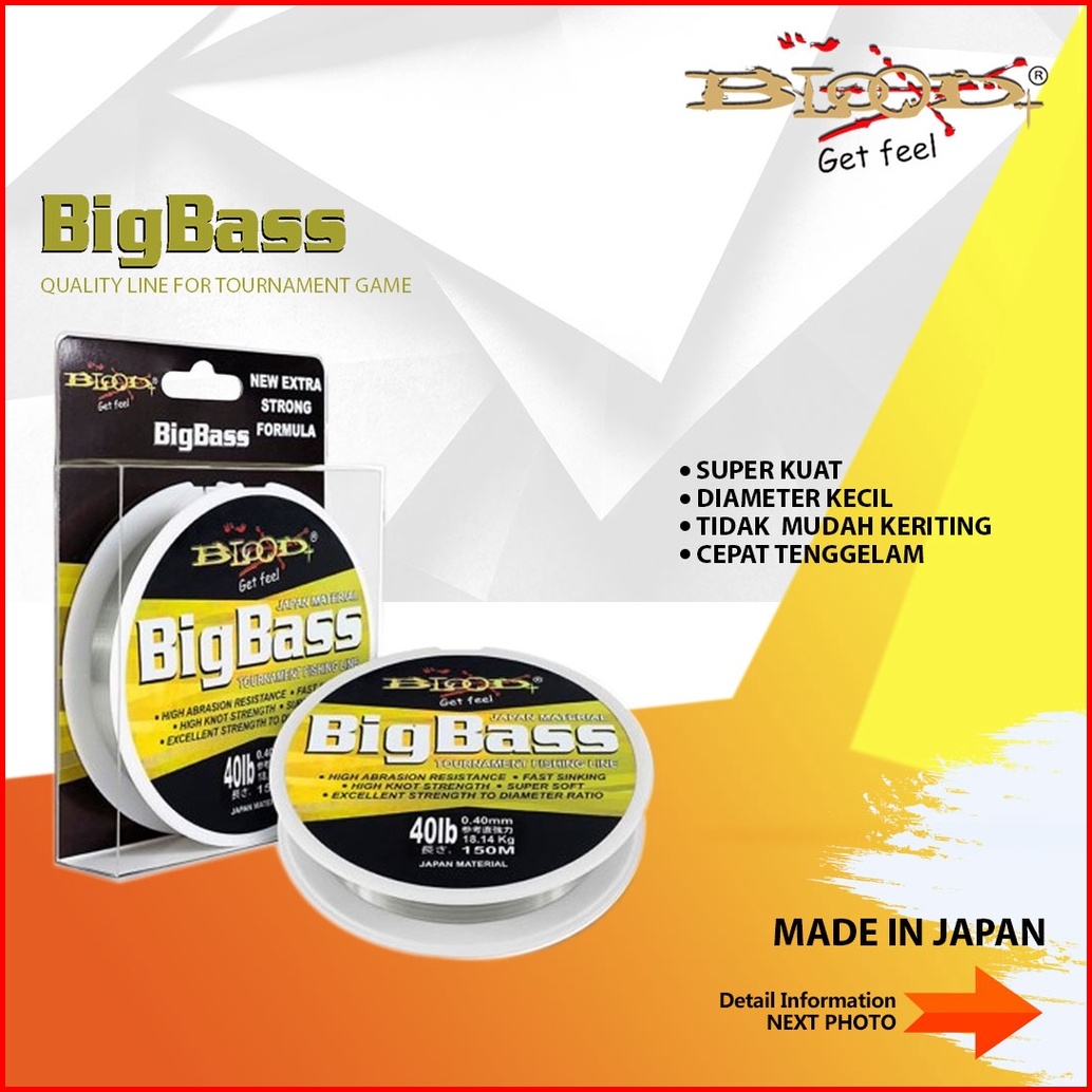 Senar Pancing Blood Big Bass Fishing Line Japan 150m Crystal White