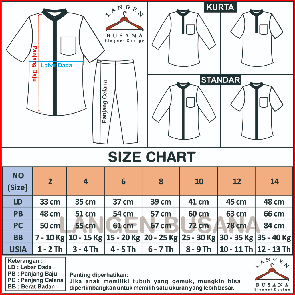 No. 4 (3-4Tahun), No. 6 (4-5Tahun), No. 8 (6-7Tahun), No. 10 (8-9Tahun), No. 12 (10-11Tahun), No. 14 (12-13Tahun)