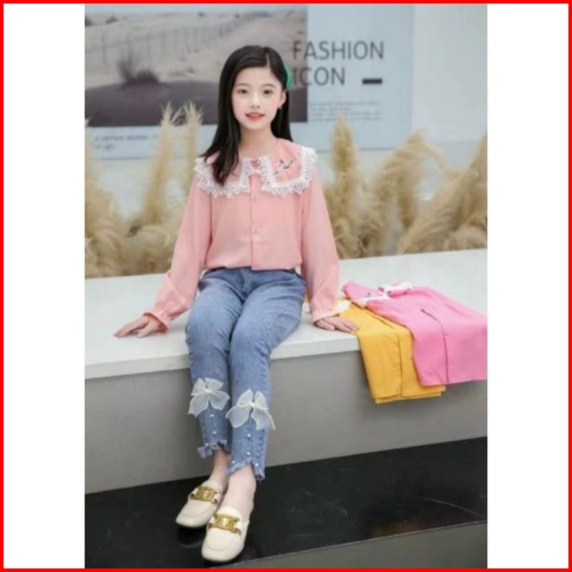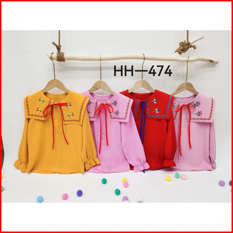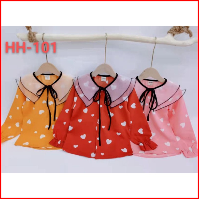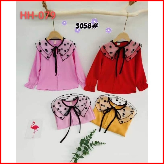Kemeja Anak Cewek 6 Tahun -10 Tahun Ala Korea Blouse Anak Perempuan Hem Kerah Love Polkadot