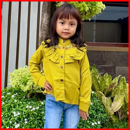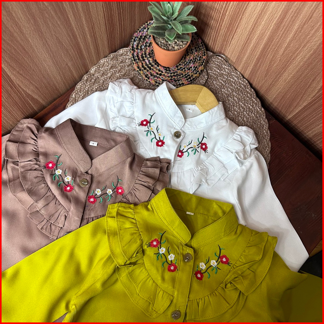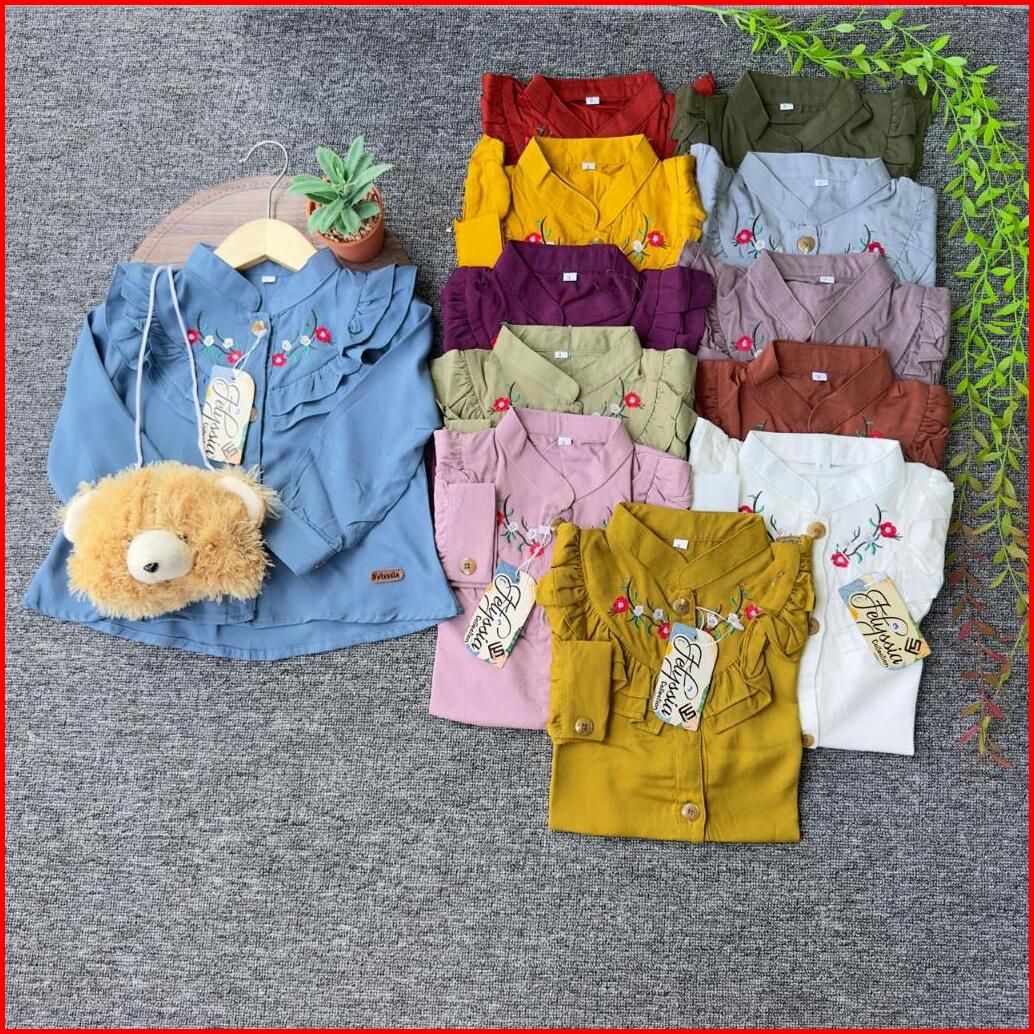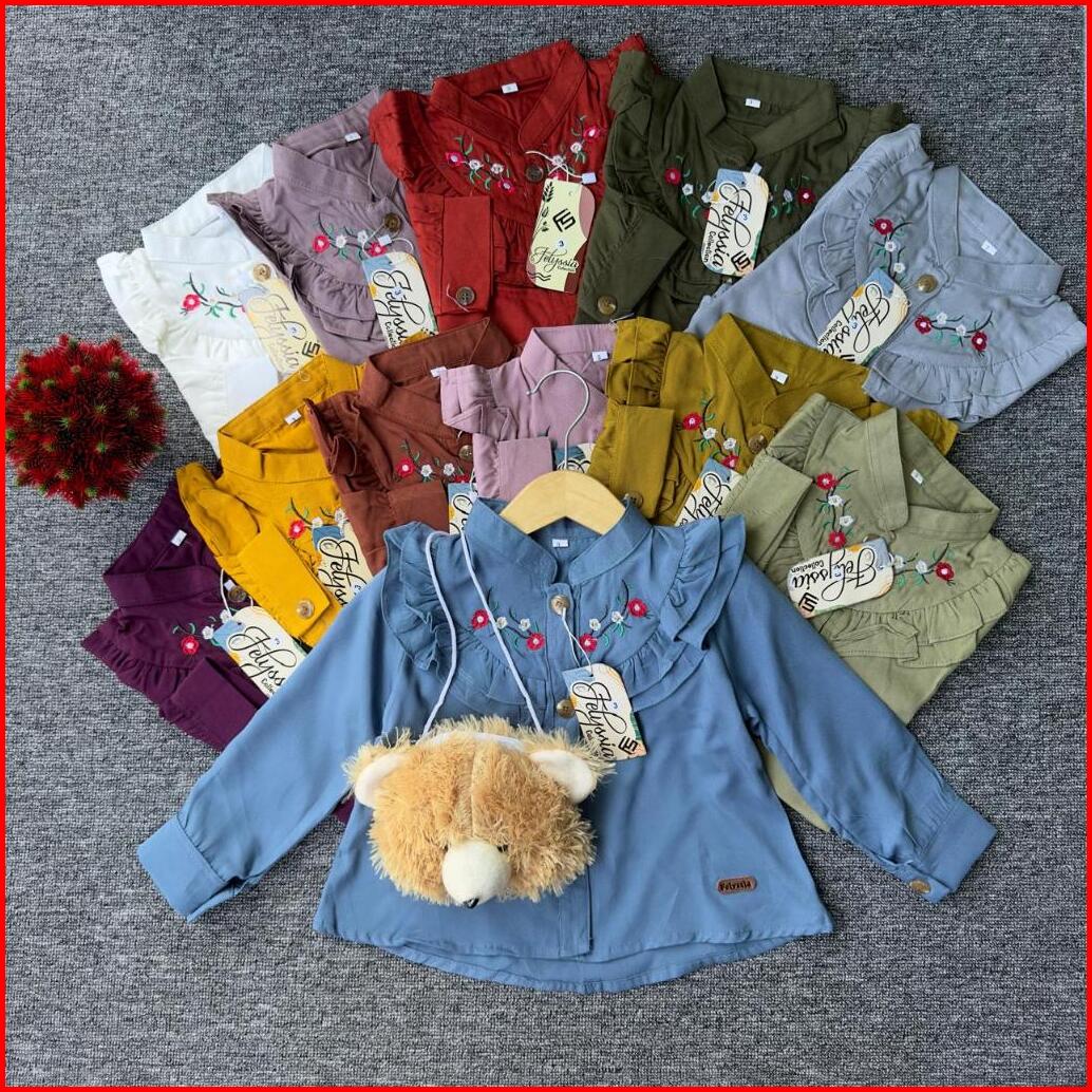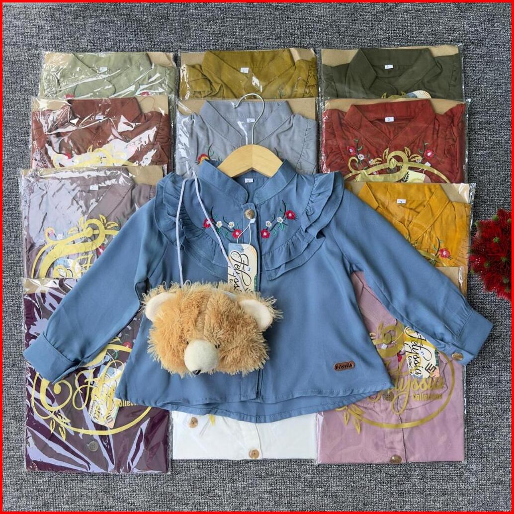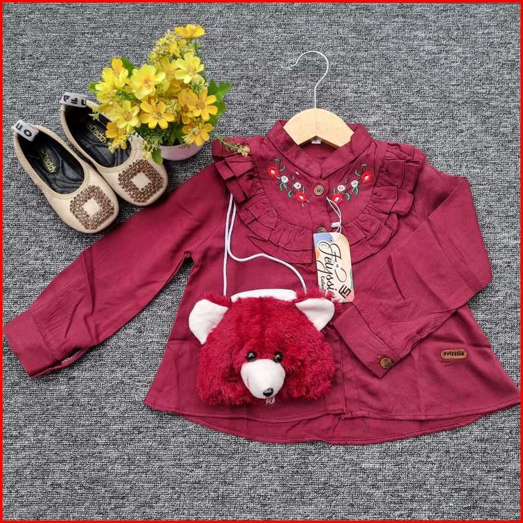 Kemeja Blouse Anak Perempuan Umur 2-7 Tahun Lengan Panjang Kain Rayon Twill Super Dan Free Tas Boneka