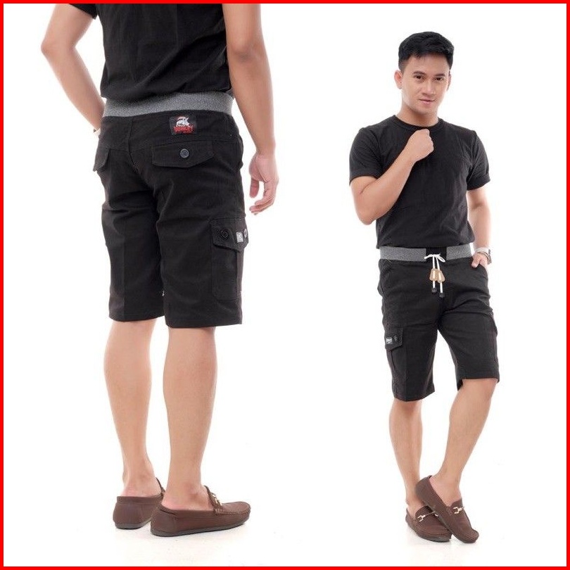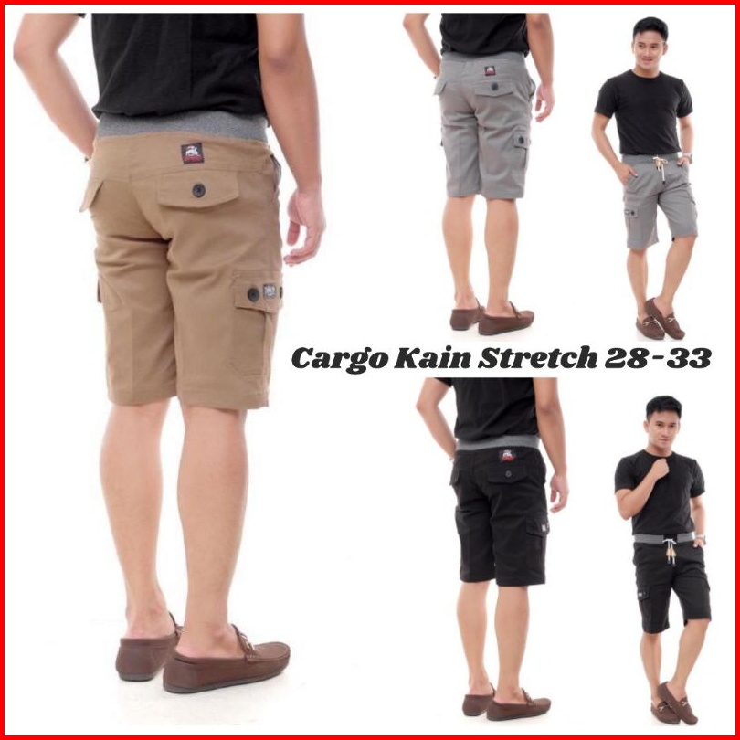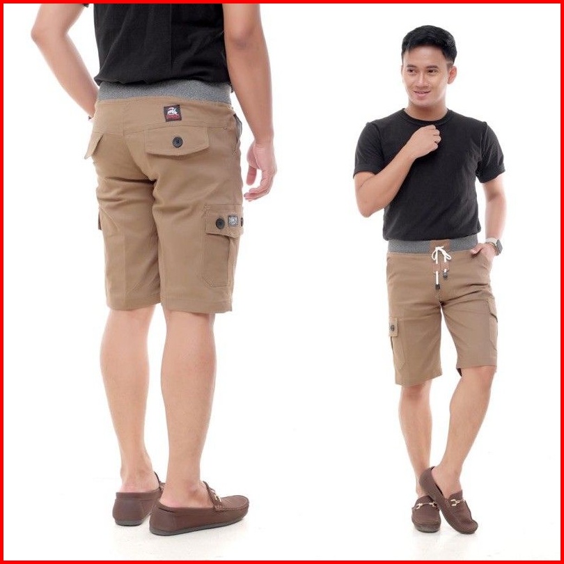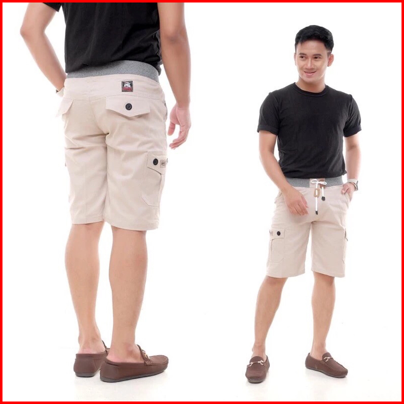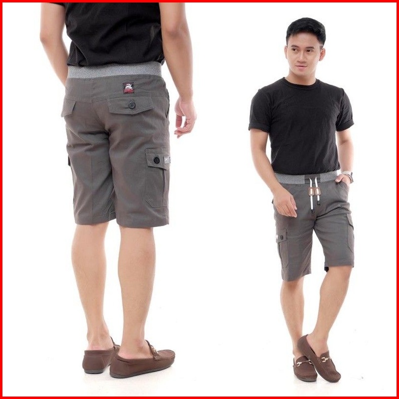 Celana Pendek Cargo Kain Melar Pinggang Karet Celana Pendek Pria Dewasa Size 28 Sampai 33 Kain Halus Kualitas Premium
