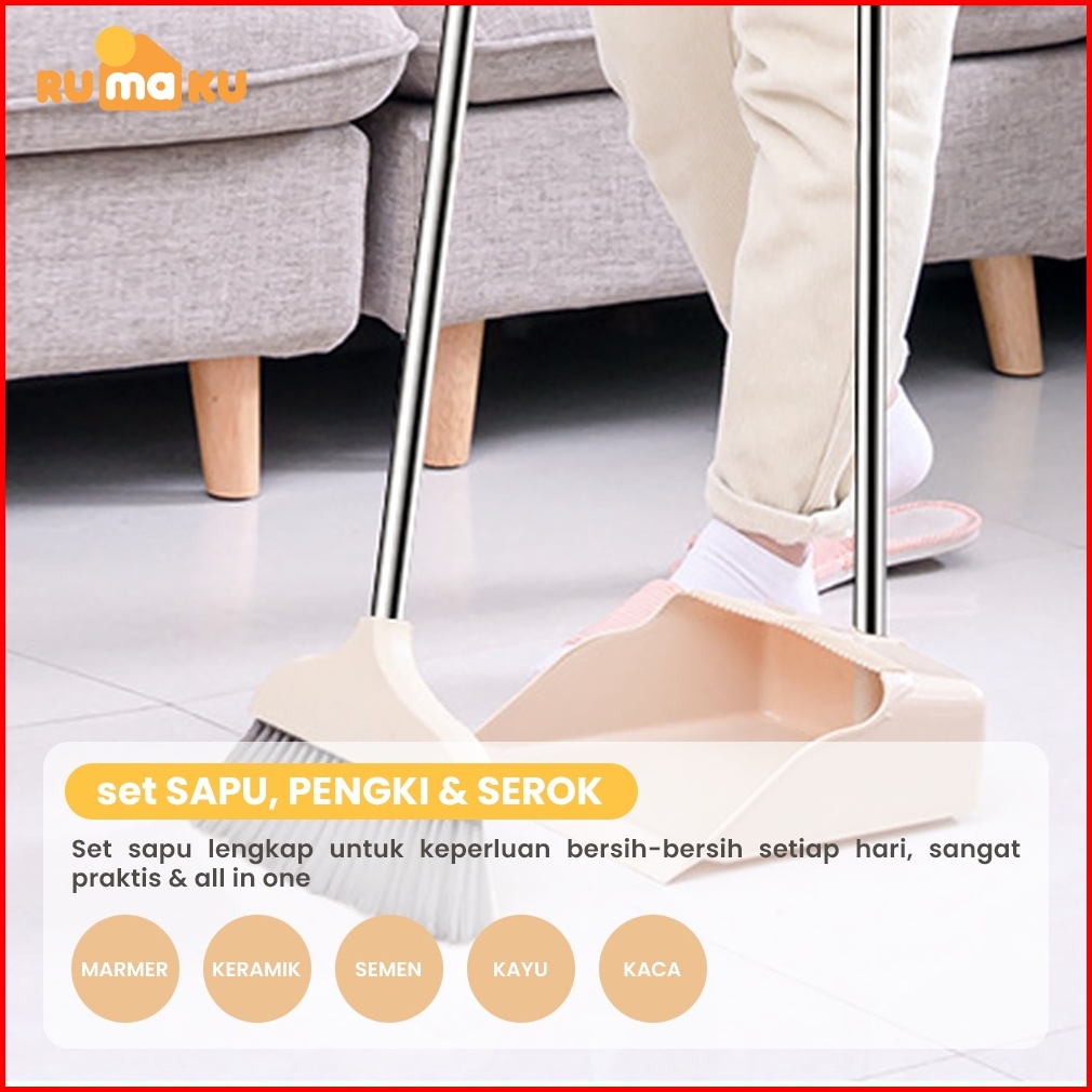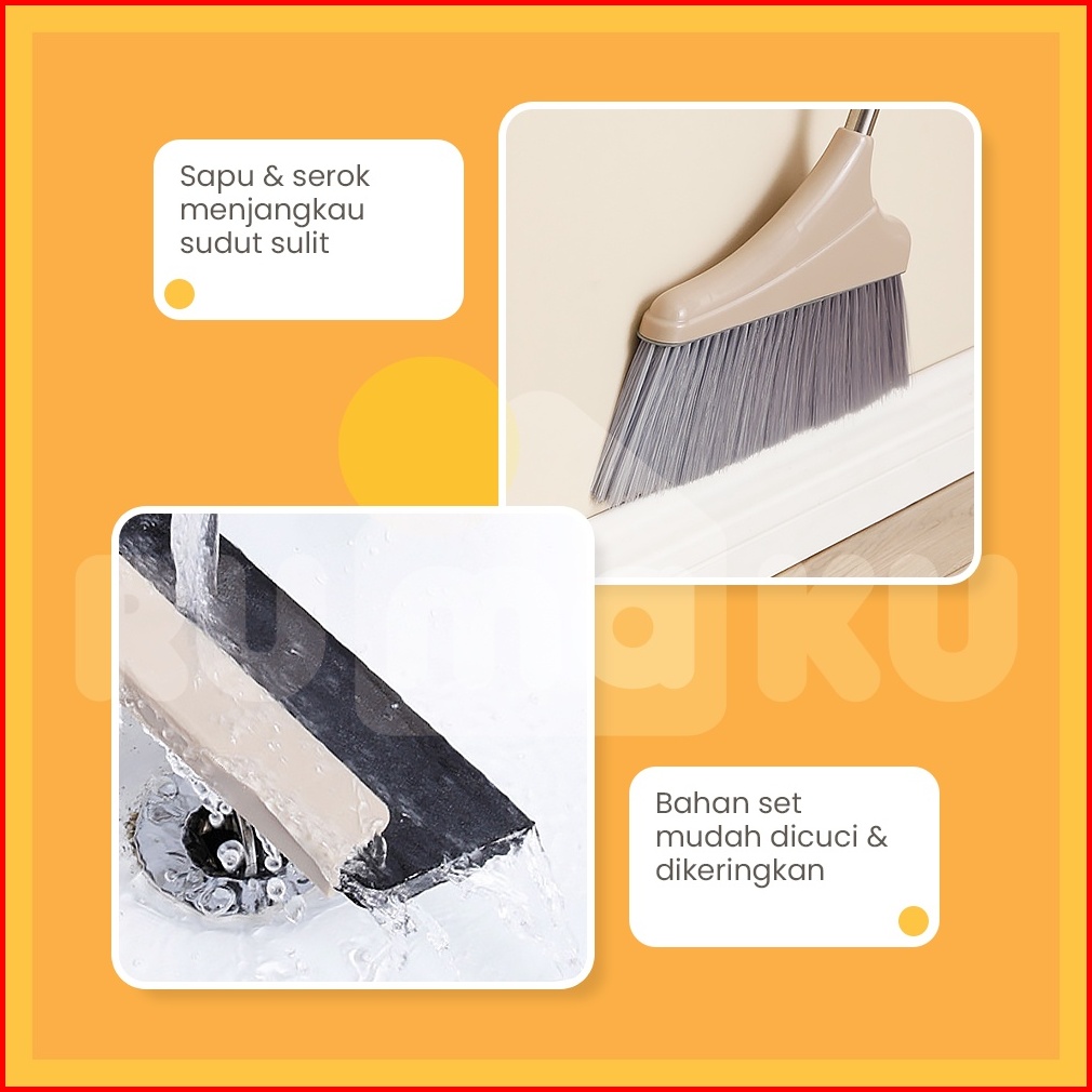 Rumaku Sapu Lantai 3 In 1 Broom Set Alat Pembersih Lantai Sapu Pengki Serokan Air