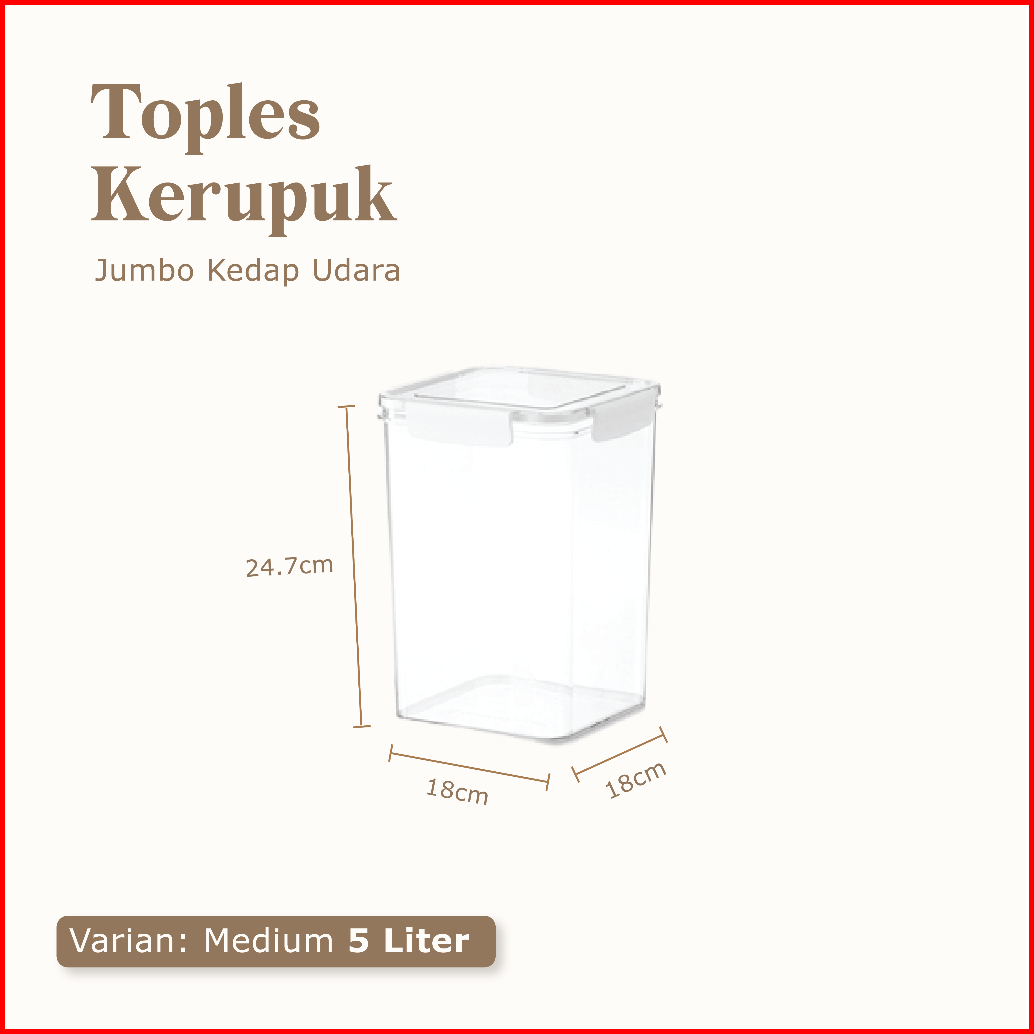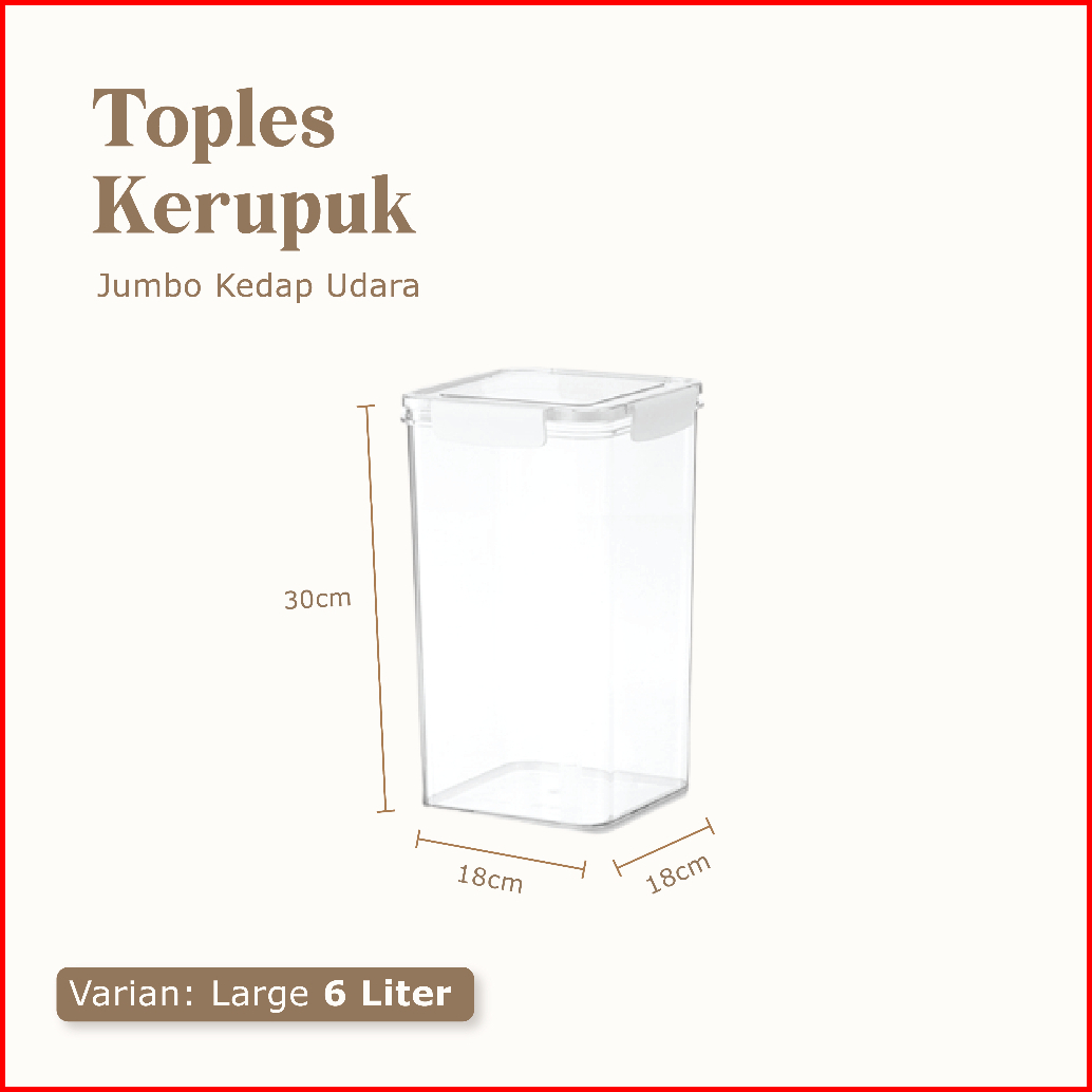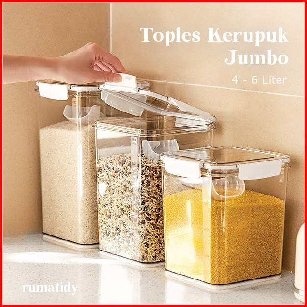 Rumatidyhaka Toples Kerupuk Jumbo Kedap Udara 4-6 Liter Bening Transparan Antibocor Estetik Minimalis Tempat Beras