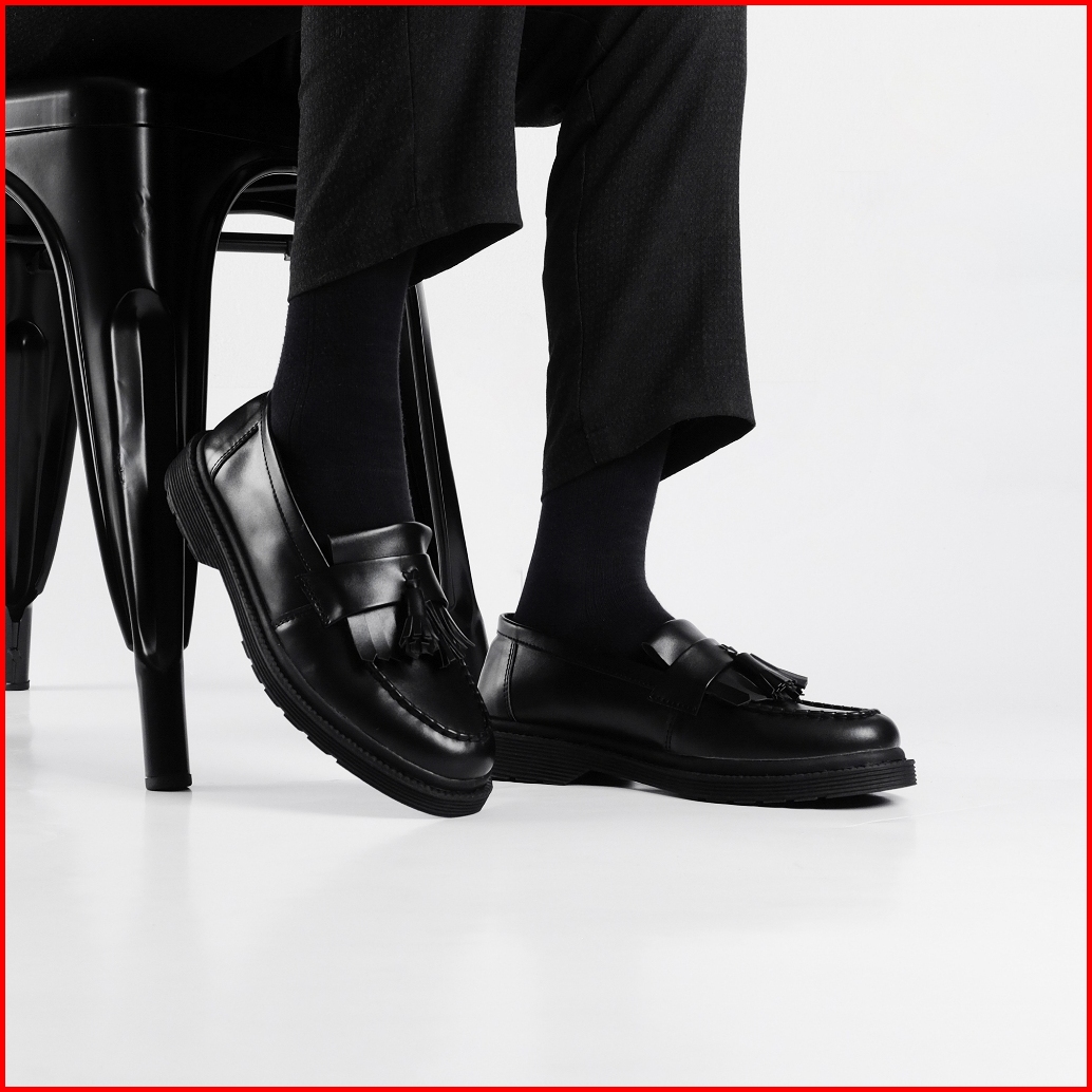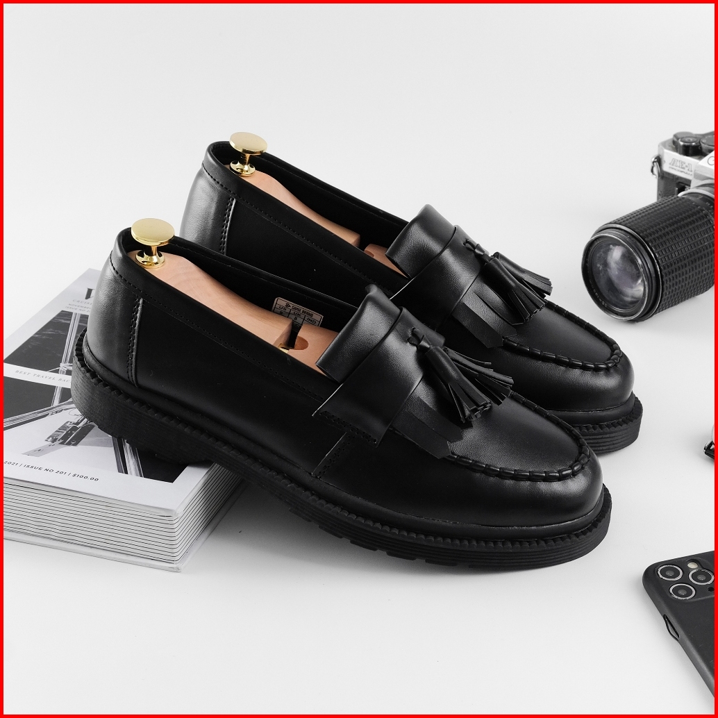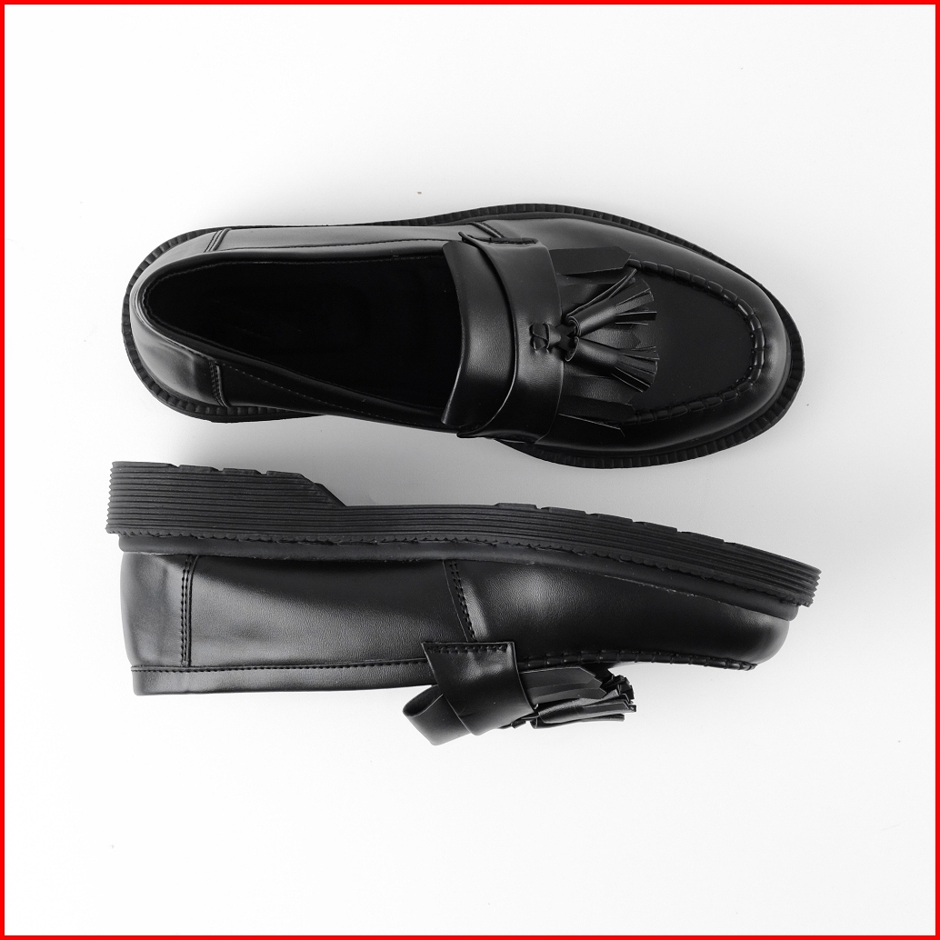 Mone Black Mnm X Giant Flames Sepatu Loafers Pria Formal Kantor Original