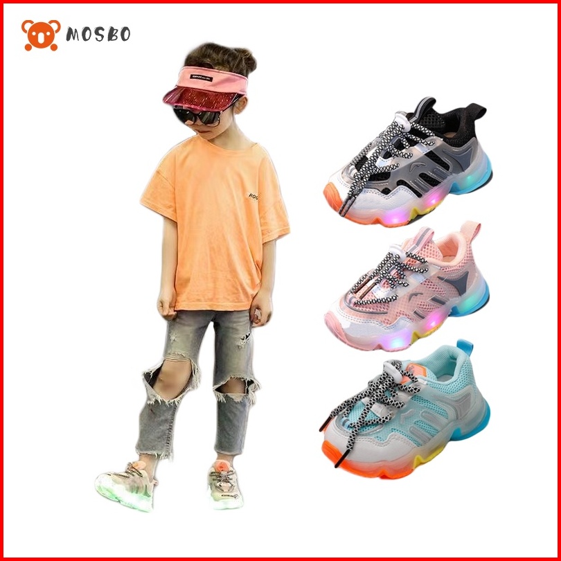 Mosbo Sepatu Led Anak Laki Sneakers Perempuan Led Menyala Import Sepatu Anak Cowo Sekolah Sepatu Lampu Anak Laki Laki