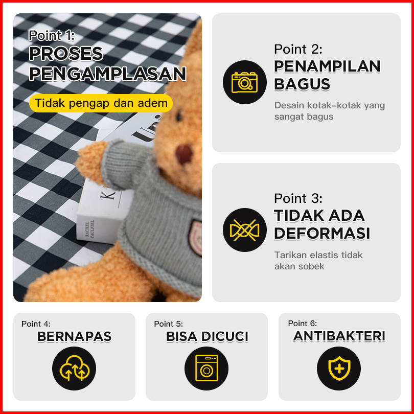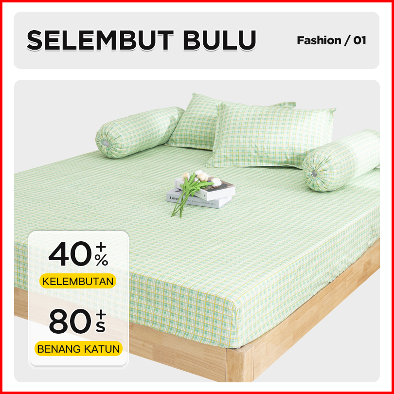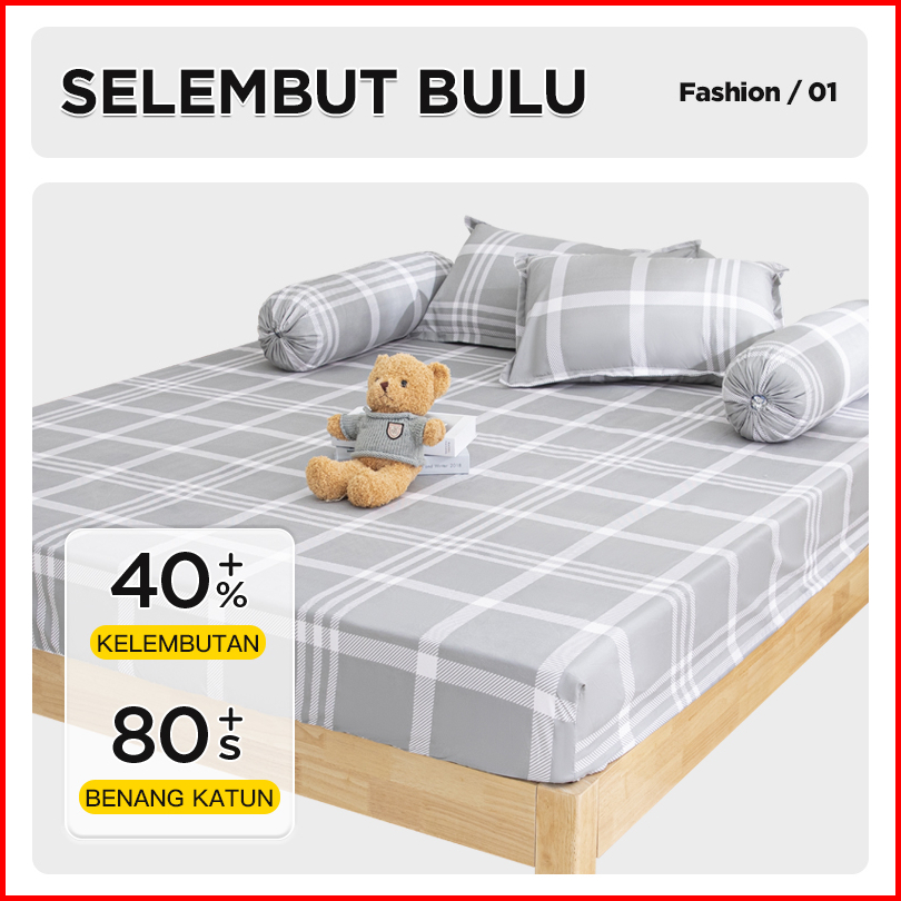 Sprei Kasur Kamar Tidur Lembut Motif Kotak Aesthetic Seprai Ukuran 160cm X 200cm