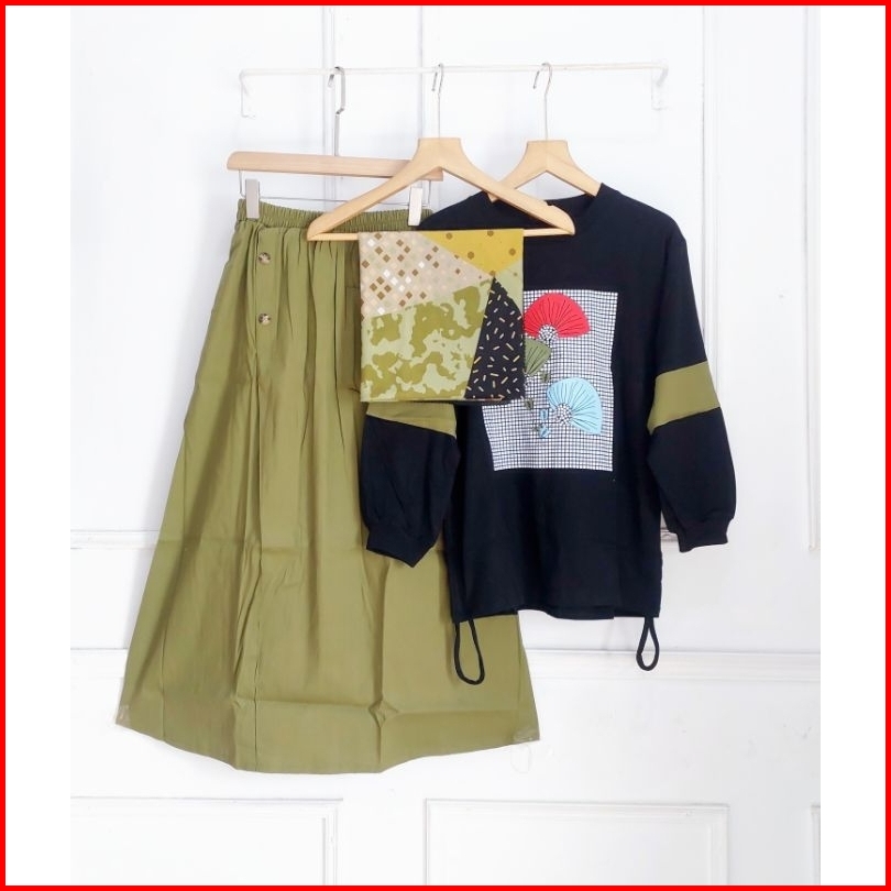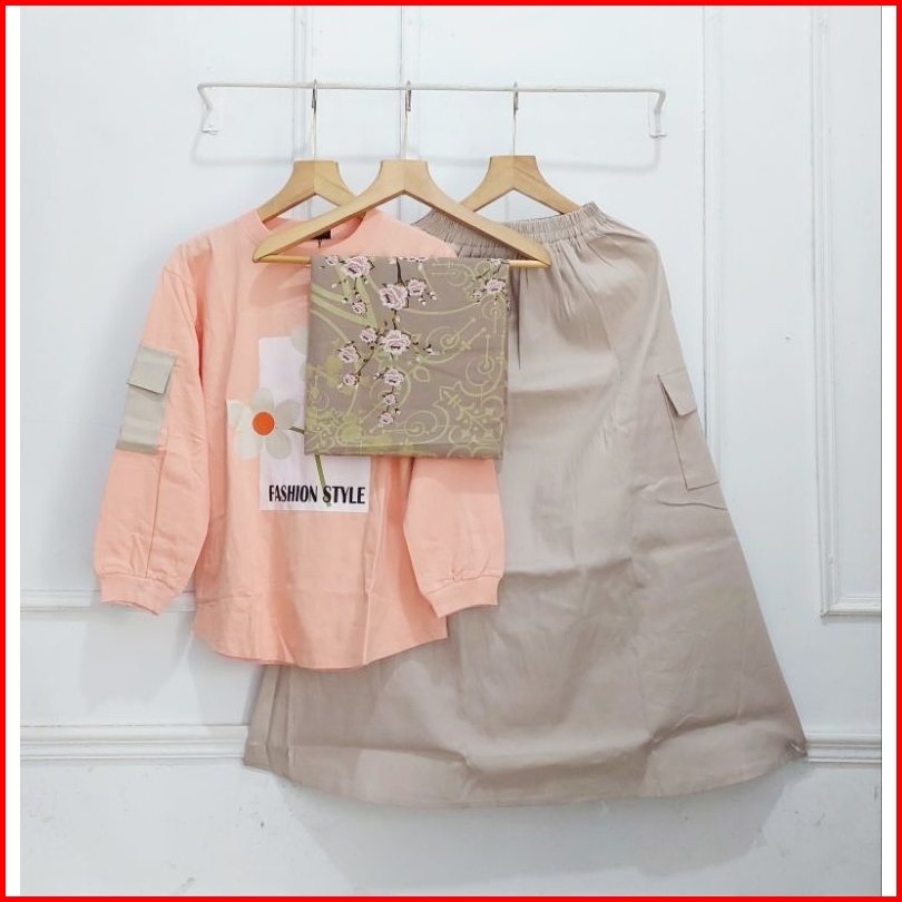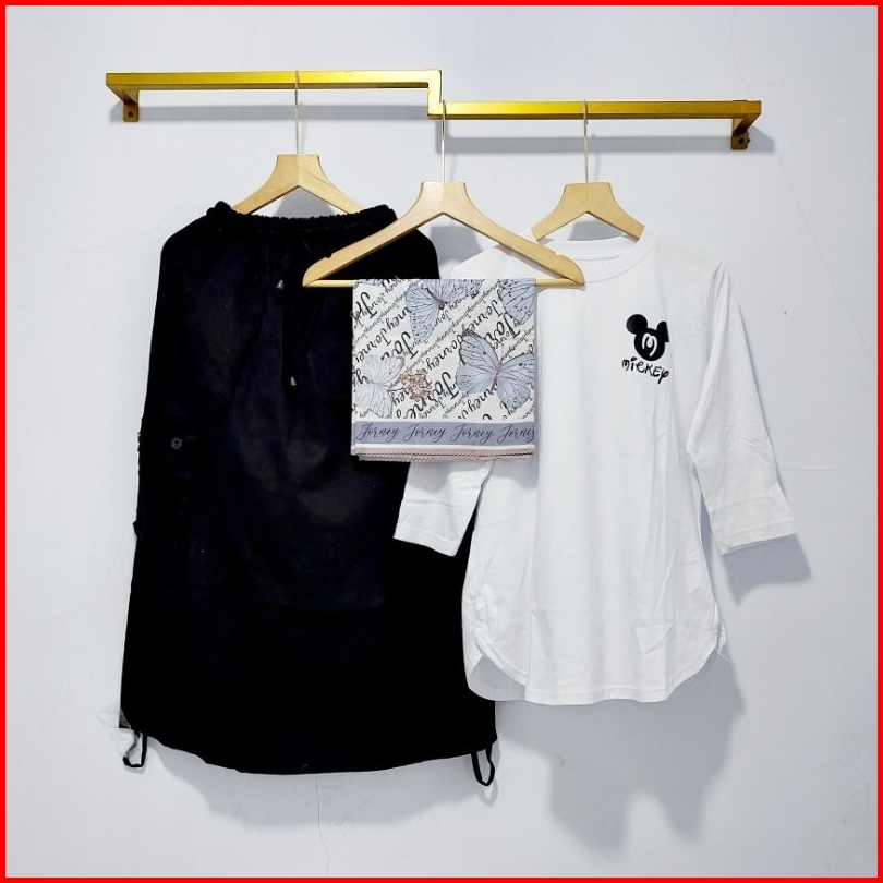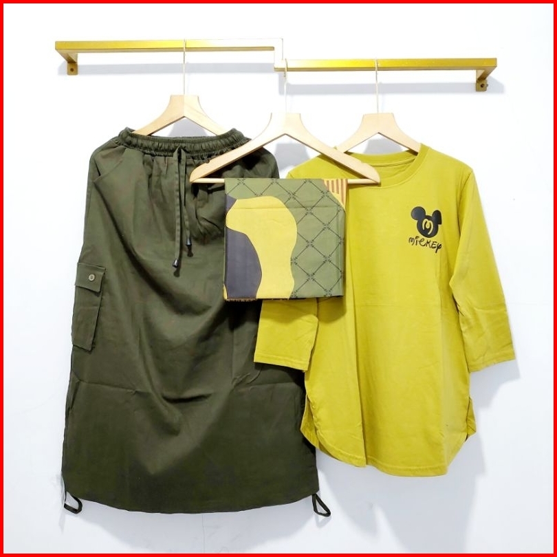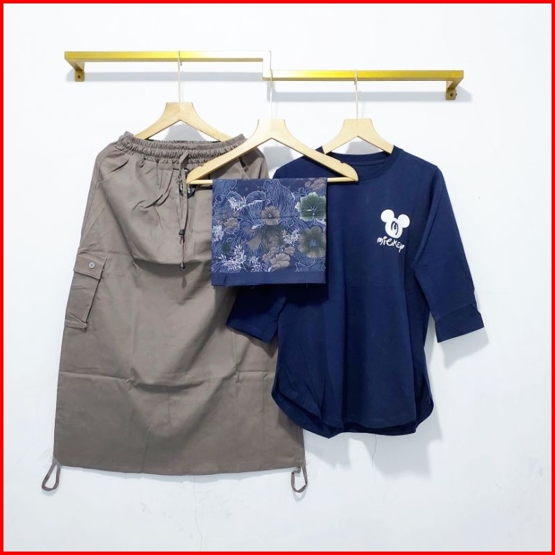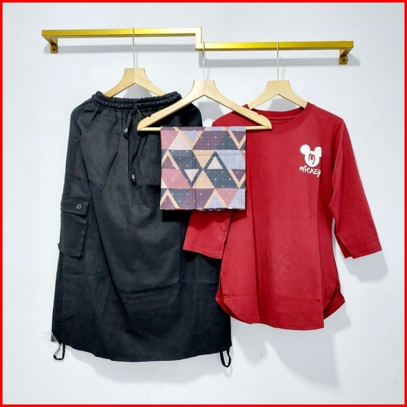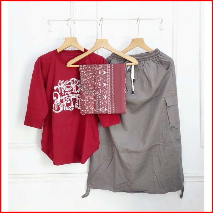 Set Rok Chino Cargo Atasan Kaos Combed 20s Hijab Voal