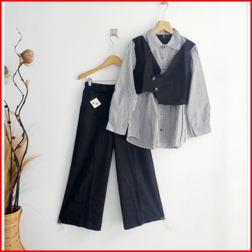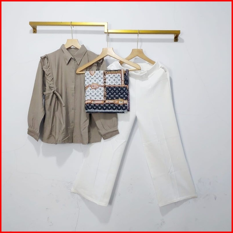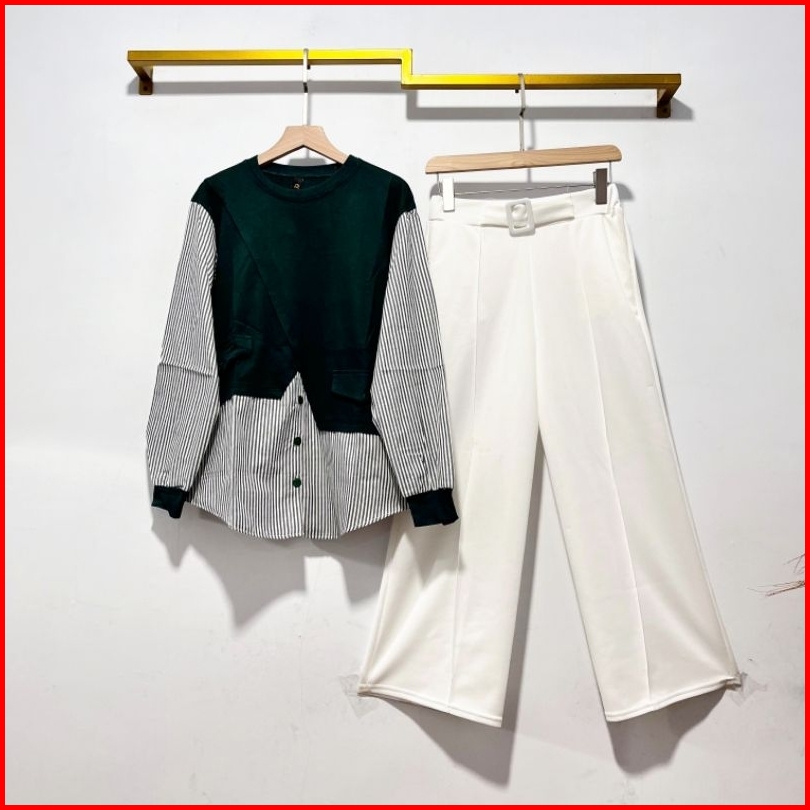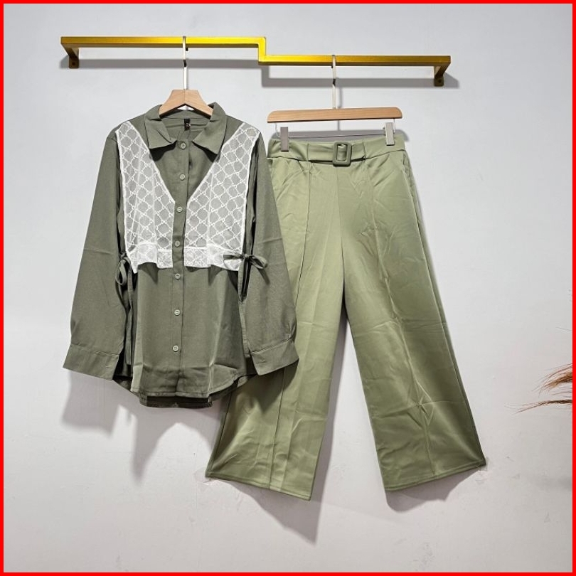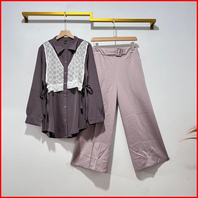 Set Cel Girls Viral Polo Linen Twill Premium Set Atasan Katun Dan Polo Linen Kulot Scuba