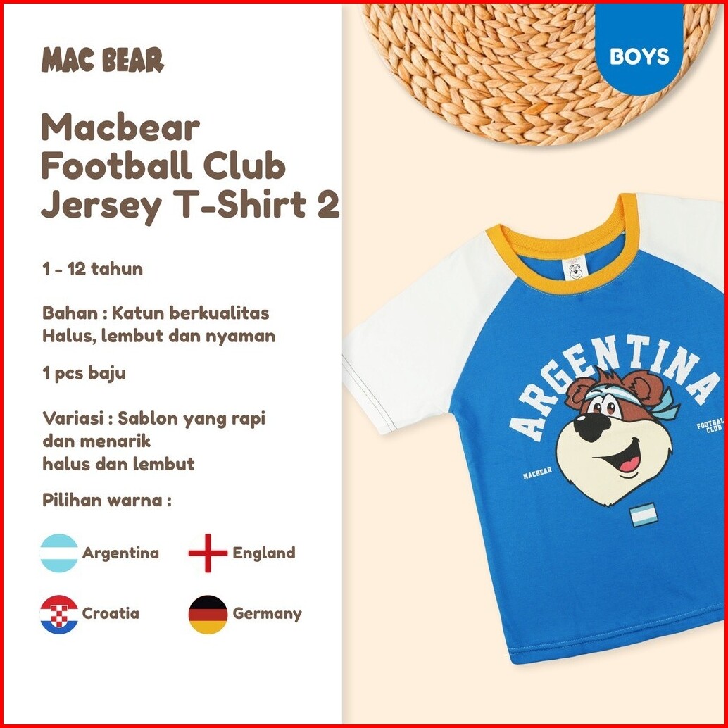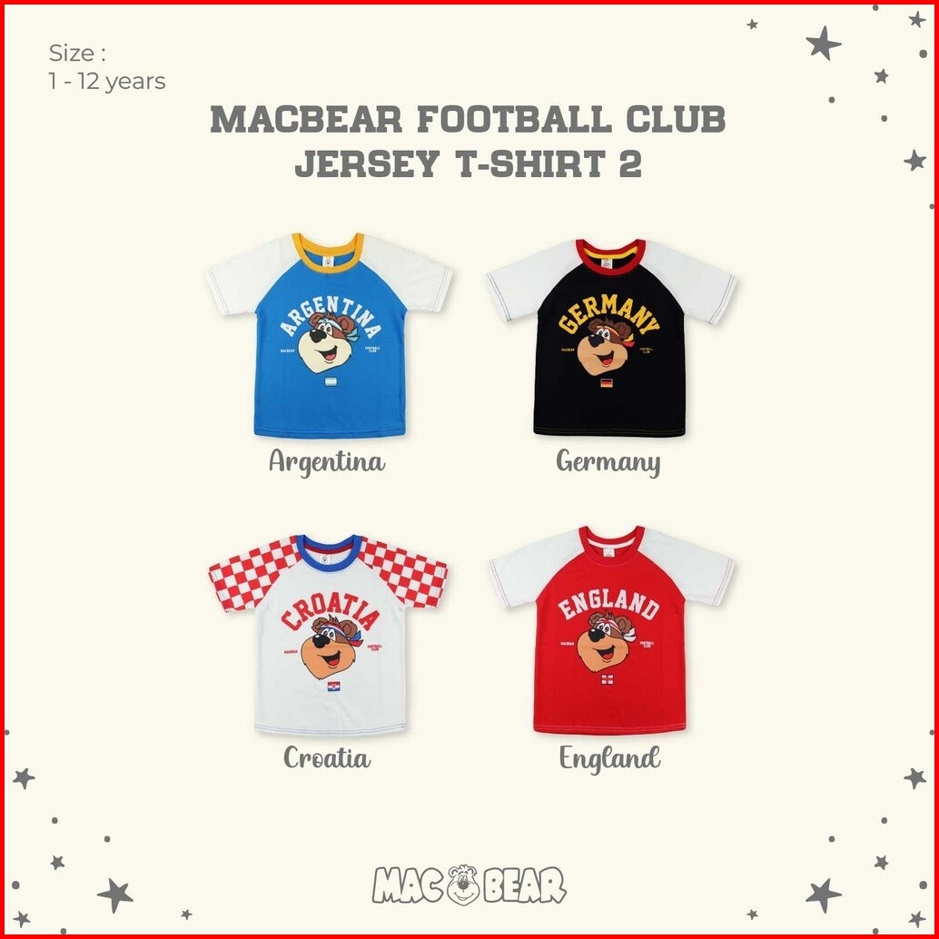 Macbear Baju Anak-remaja Laki-laki Kaos Anak-remaja Sport Collection Jersey Anak-remaja Jerman Inggris Argentina Kroasia