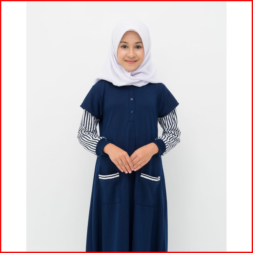 Applekidz Gamis Anak Perempuan Tanggung Syari Wing Line Navy