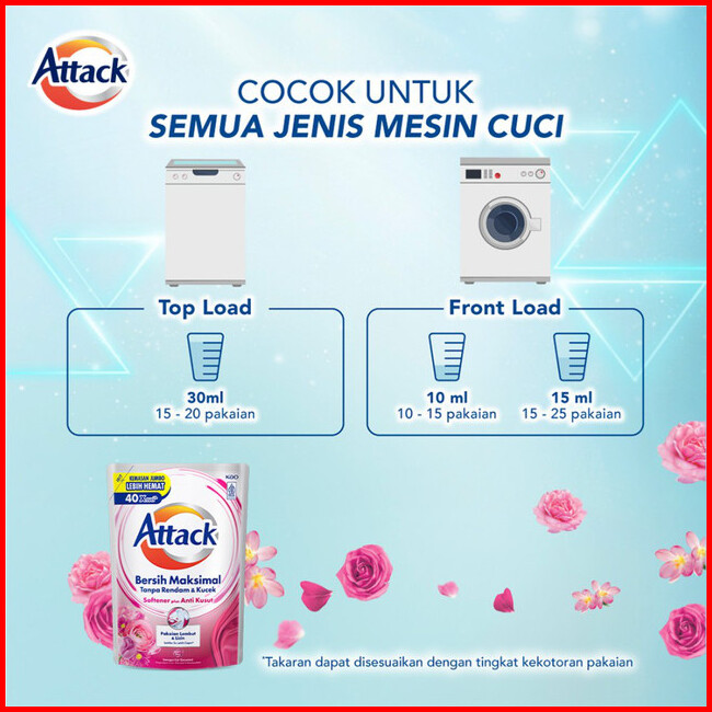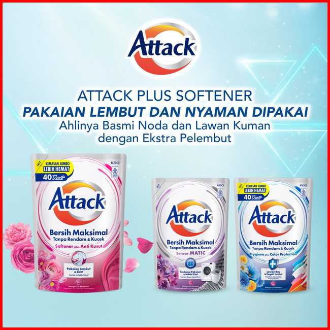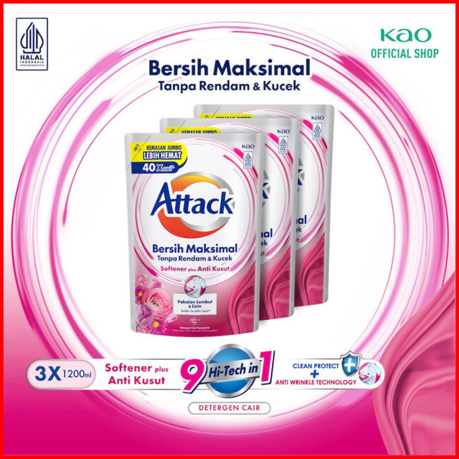 Attack Plus Softener - Deterjen Cair Semua Jenis Mesin Cuci 1200ml X 3 Pcs