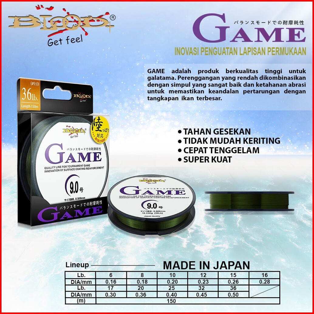 Senar Pancing Blood Game Fishing Line Japan 150m