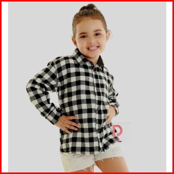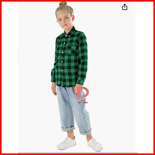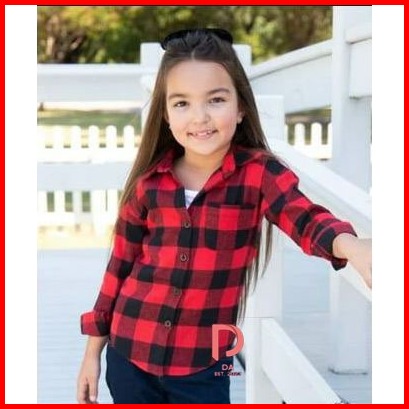 Ready Kemeja Hem Anak Perempuan Flanel Kotak-kotak Lengan Panjang Wanita Kancing Bawah M- 2xl 2023