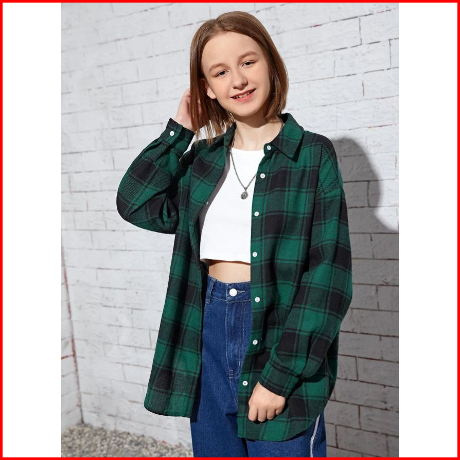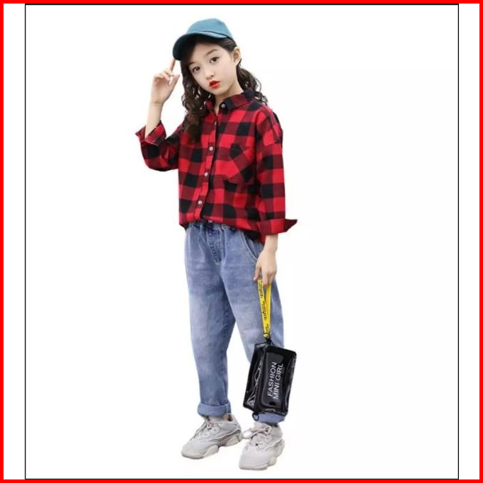 Kemeja Flanel Anak Perempuan Lengan Panjang Baju Anak Tanggung Setelan Anak Premium Usia 5-12 Tahun