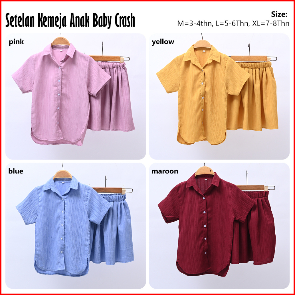 Setelan Kemeja Baby Crash Anak Perempuan Umur 3-8 Tahun