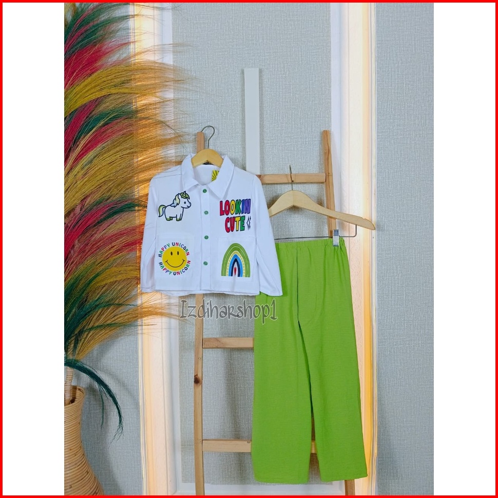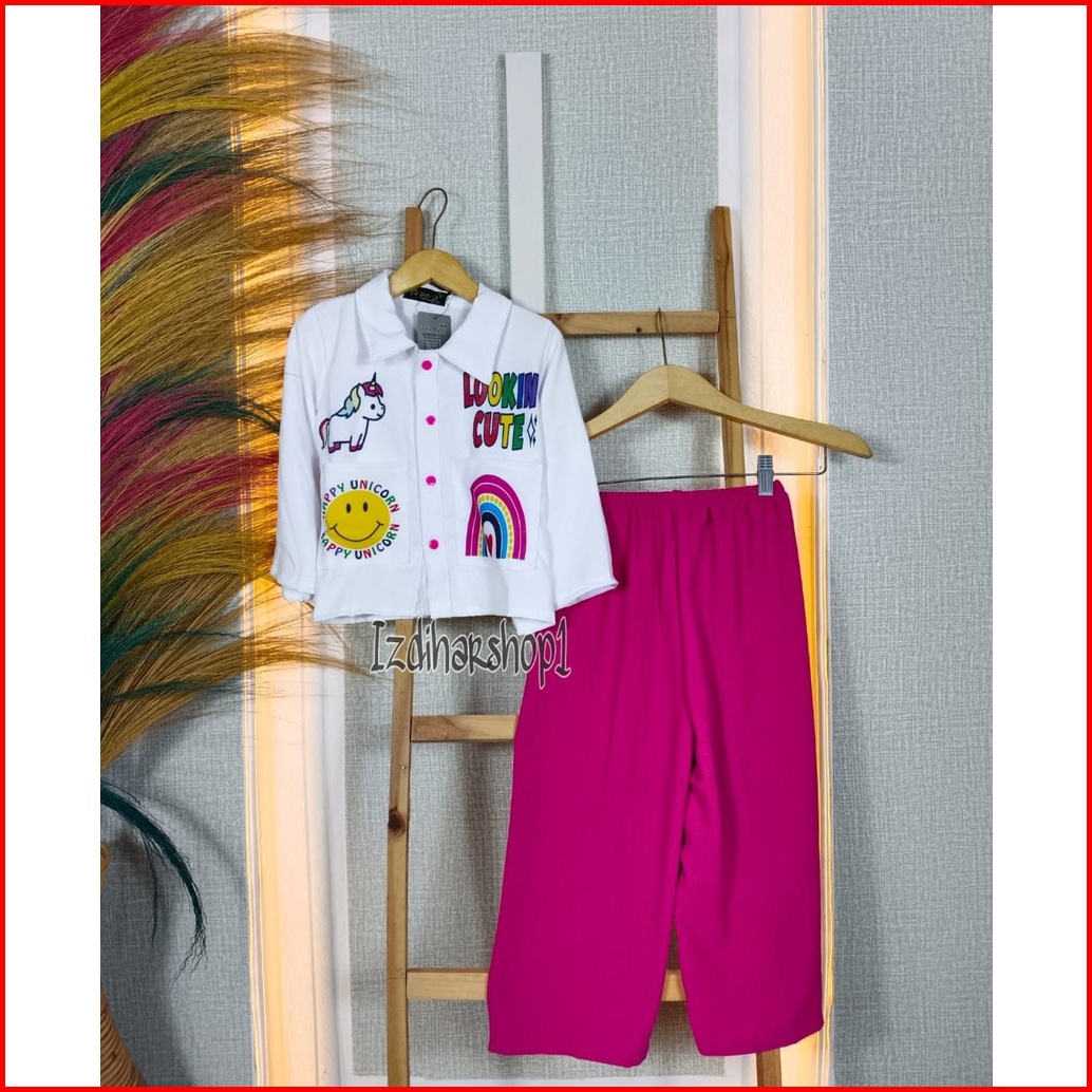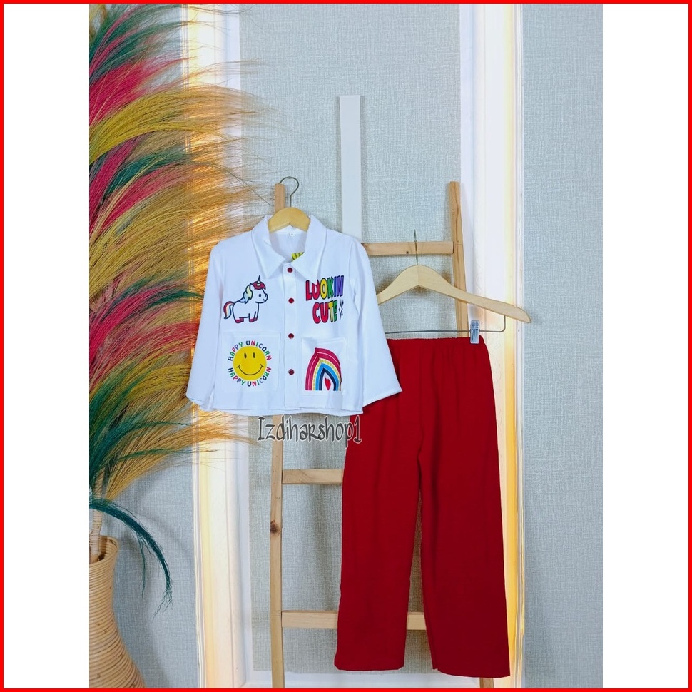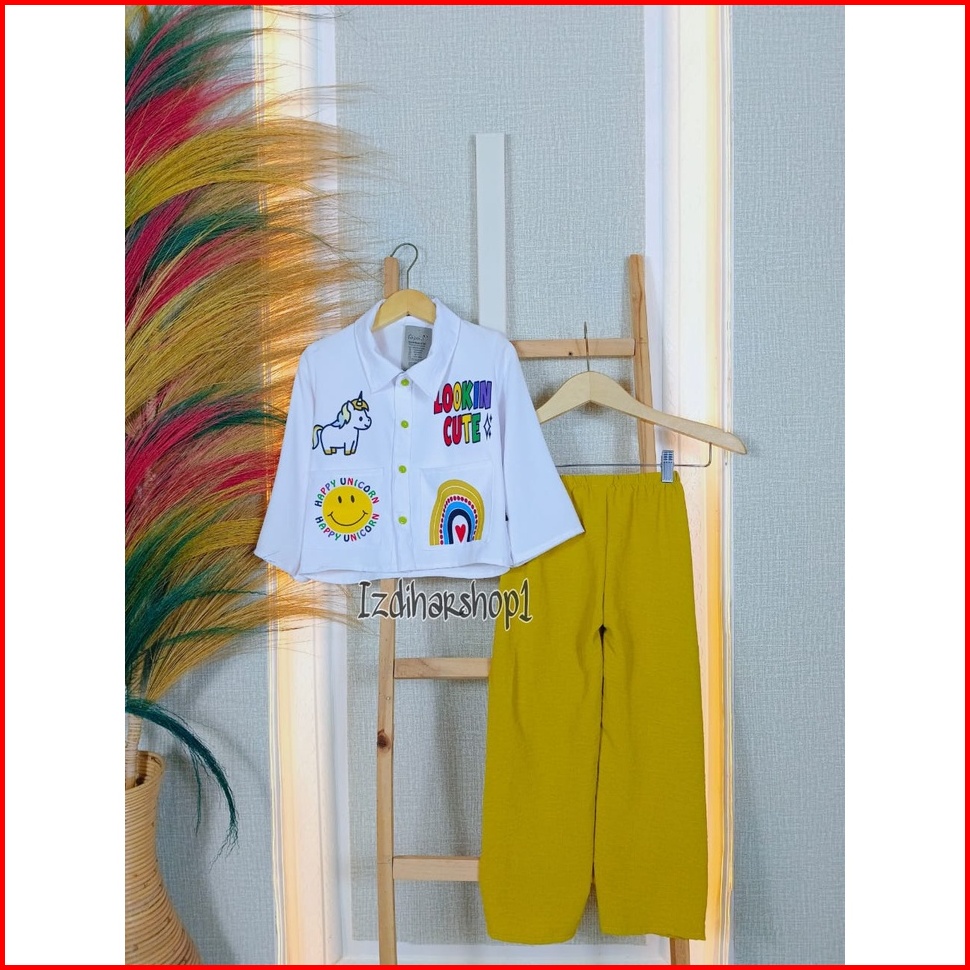 Stelan Kemeja Anak Perempuan Bahan Crinkle Airflo Usia 1-12thn Setelan Anak Perempuan Motif Printing