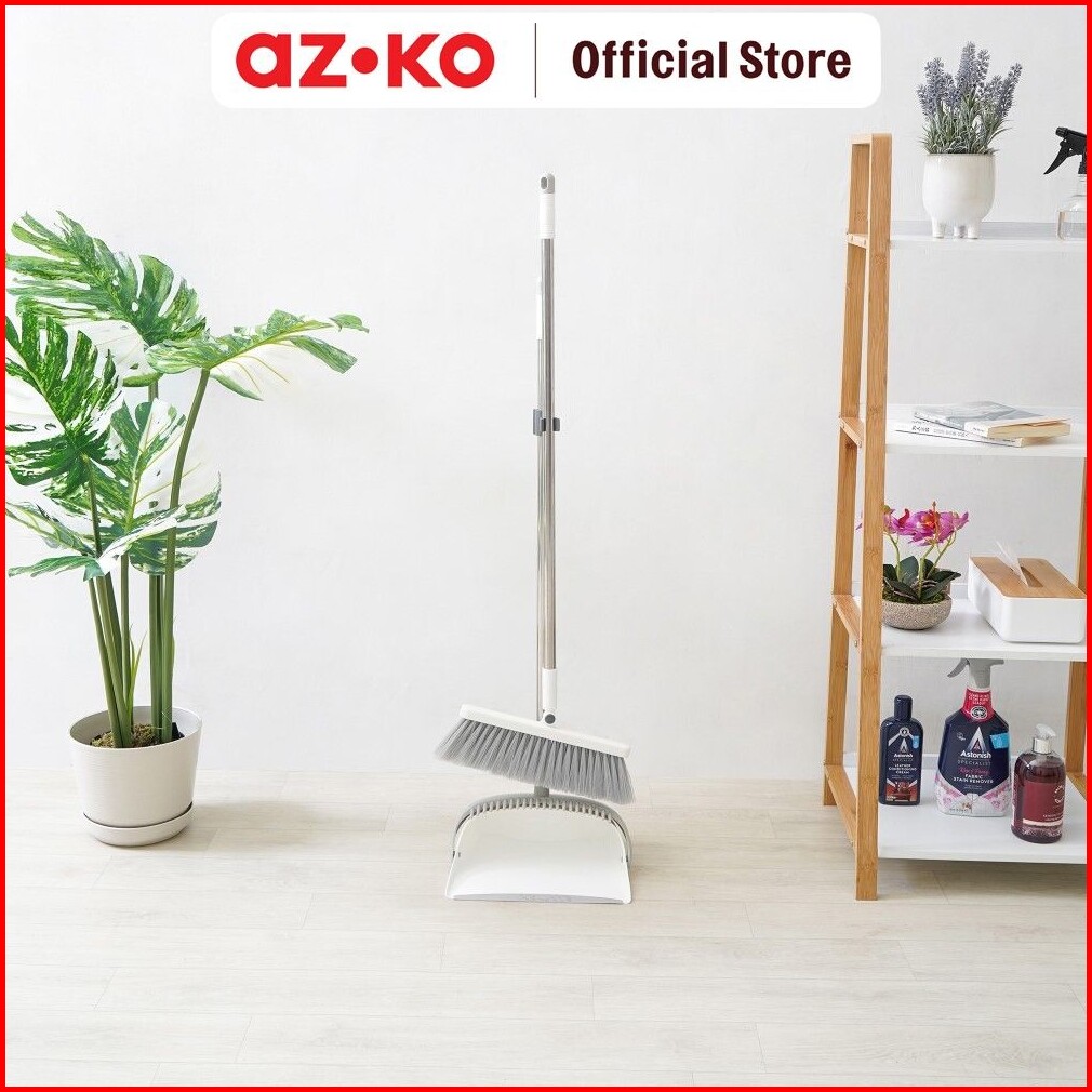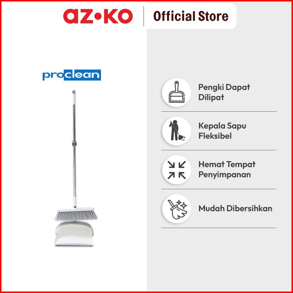 Azko Proclean Sapu Pengki Lipat - Putih Floor Cleaner Set Sapu Dan Serokan Lantai Broom And Dust Pan Alat Kebersihan Cle