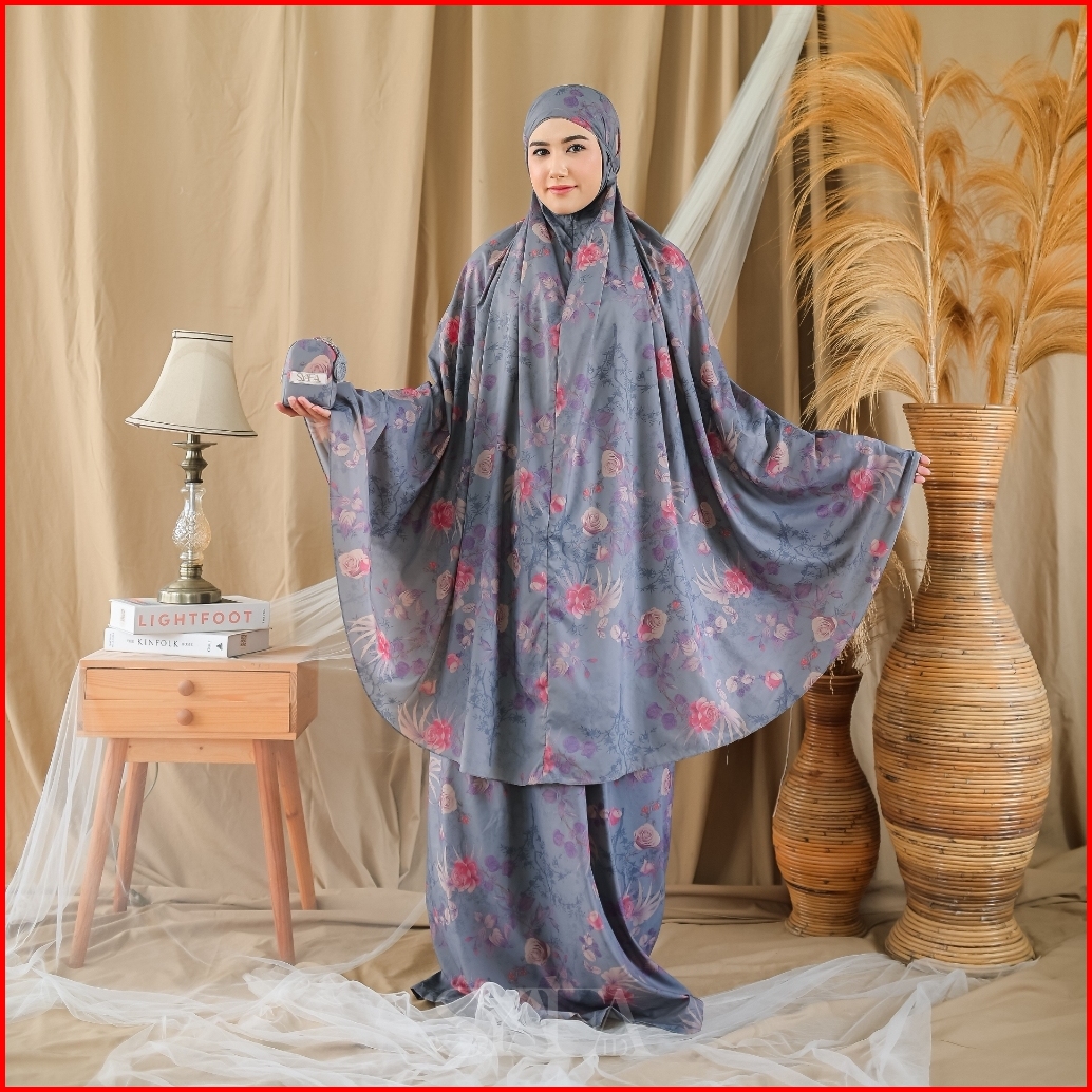 Mukena Traveling Mini Pouch Terkecil Premiumth 2 In 1 Dewasa Parasut Korea Full Motif