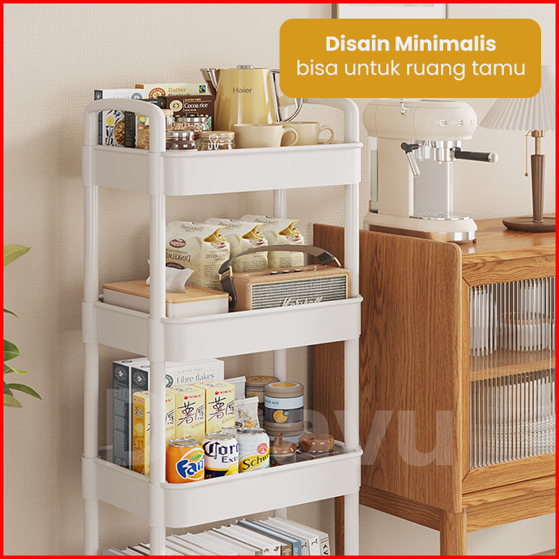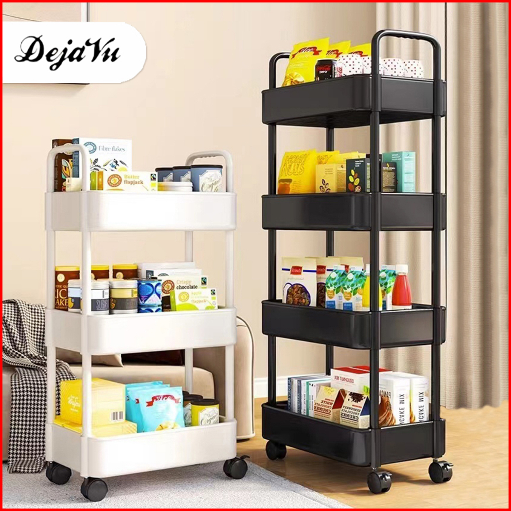 Dejavu Rak Dorong Susun Dapur Troli Serbaguna Rak Lantai Beroda Kamar Mandi Tempat Penyimpanan Trolley Rak Skincare Make