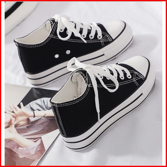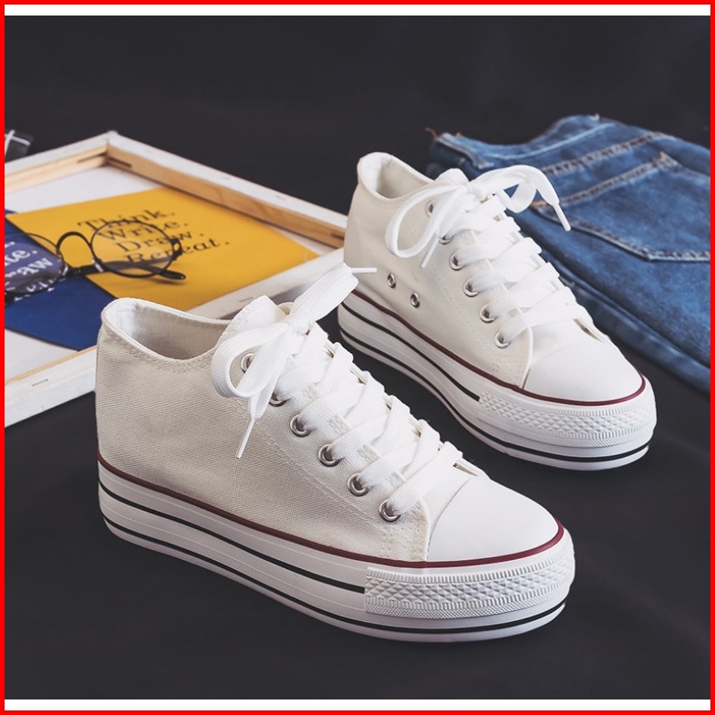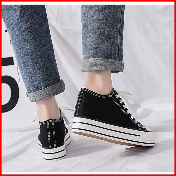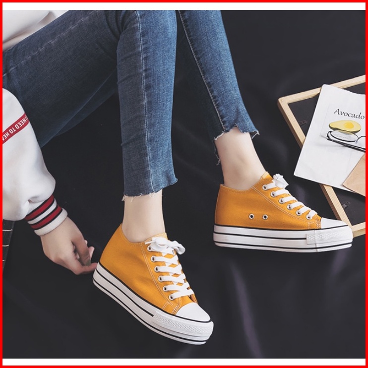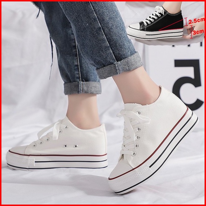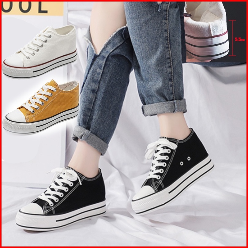 Codsepatu Kanvas Wanita Sepatu Wedges Meningkatkan Sepatu Wanita Sepatu Putih Hitam Kuning Bernapas Shoes