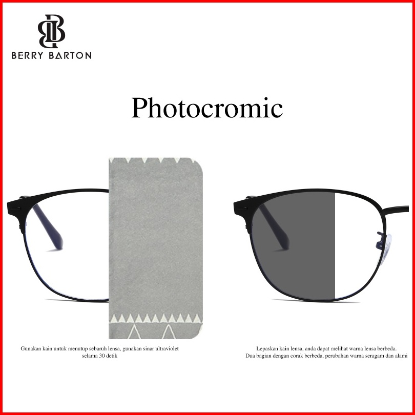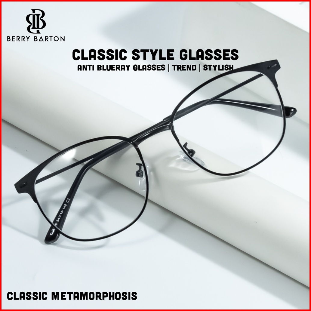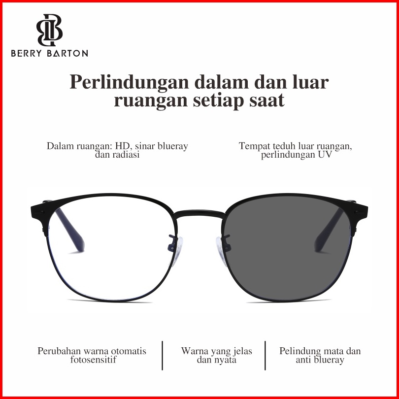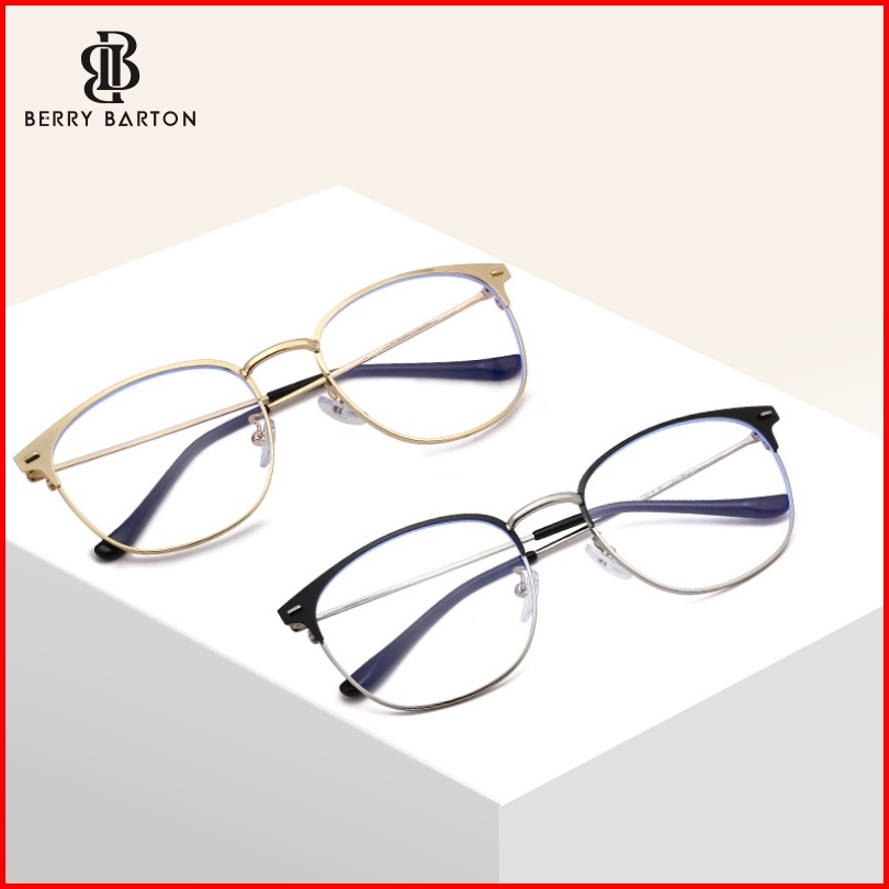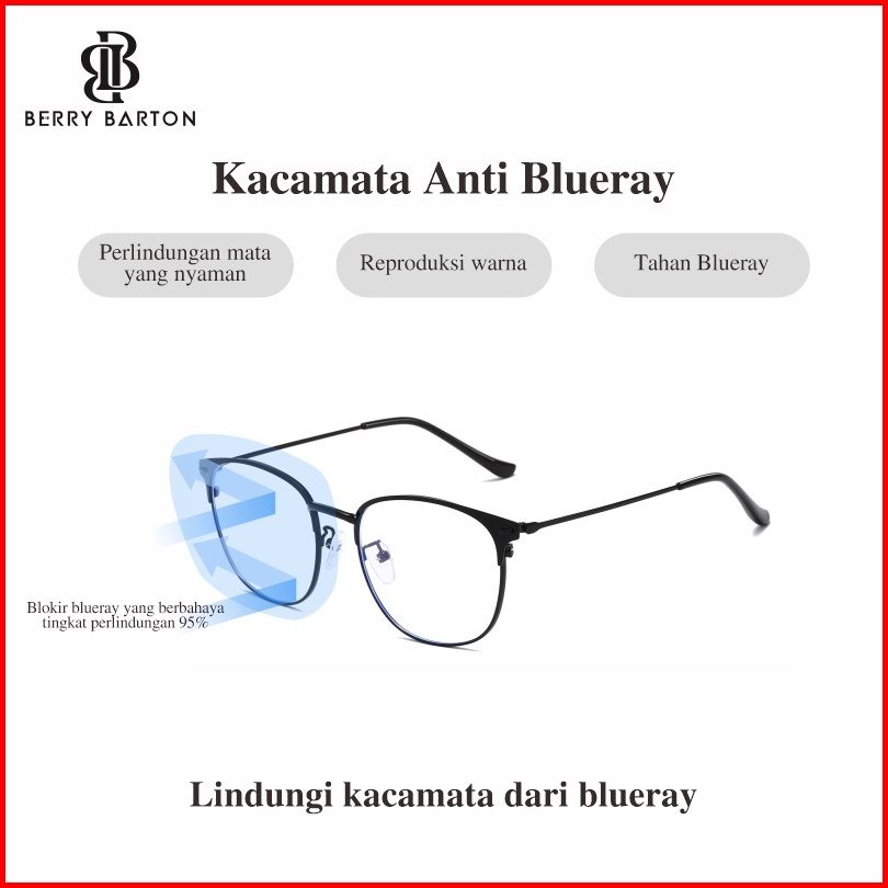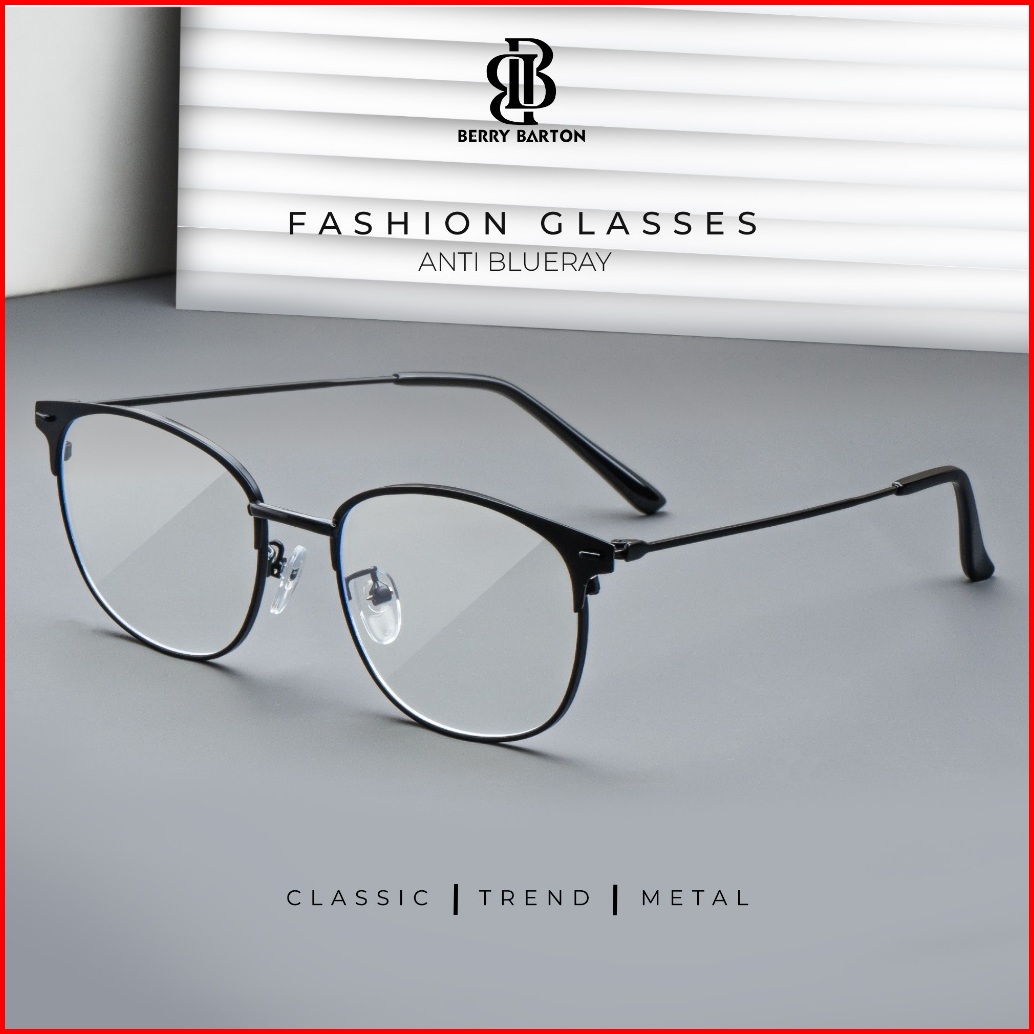 Berrybarton - Kacamata Fashion Segi Empat Metal Anti Radiasi Bluecromic Pria Wanita 8736