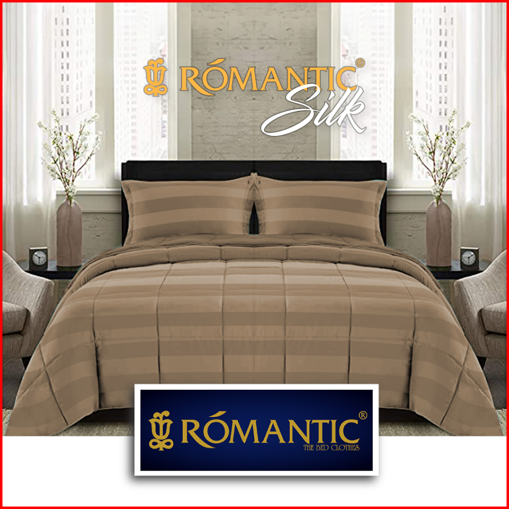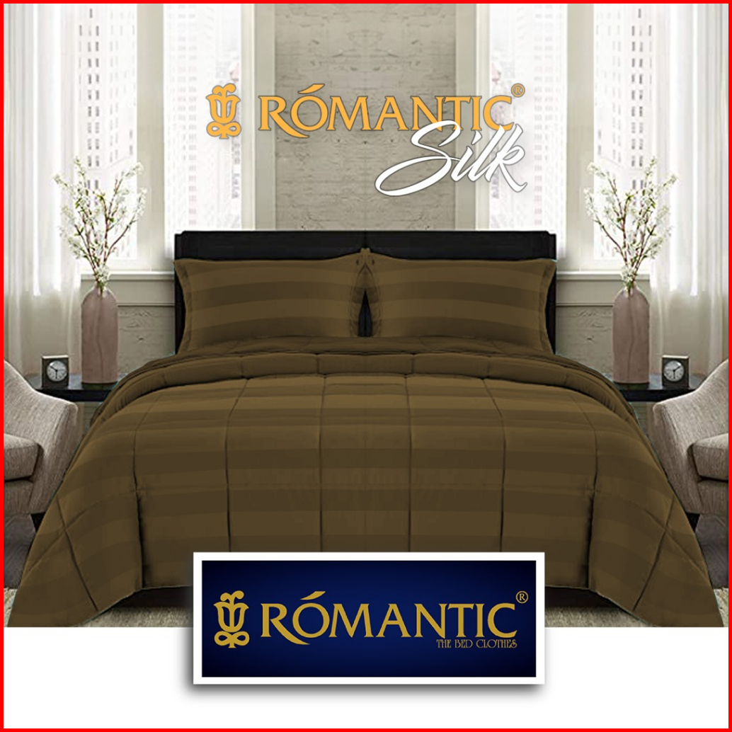 Bedcover Sprei Set Microtensel Coklat By Romantic Silk Motif Salur Micro Lyocell Sutra