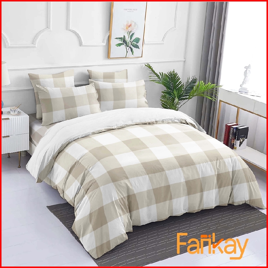 Bed Cover Set Gingham Khaki Mix White Emily Ukuran Lengkap 90x200 - 200x200