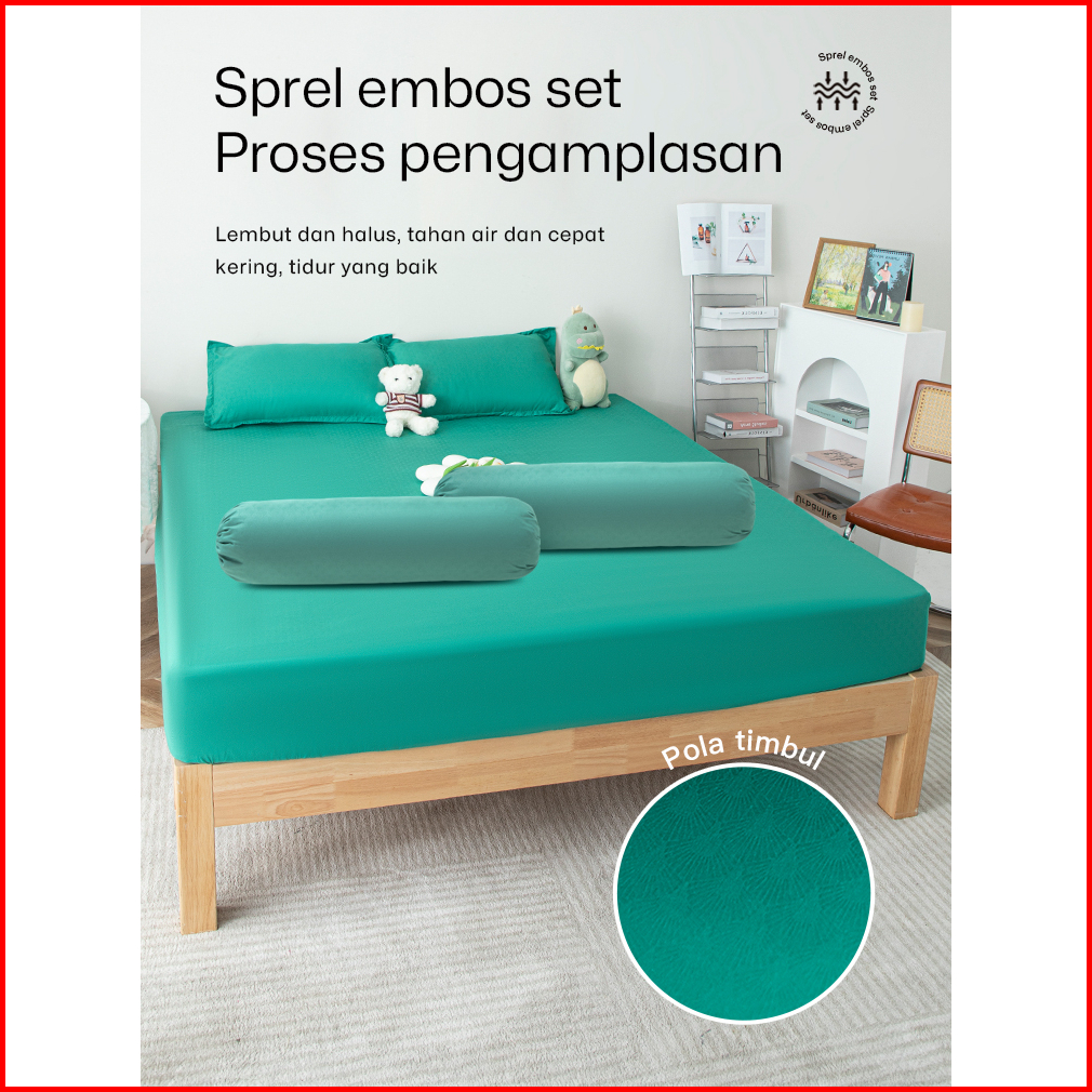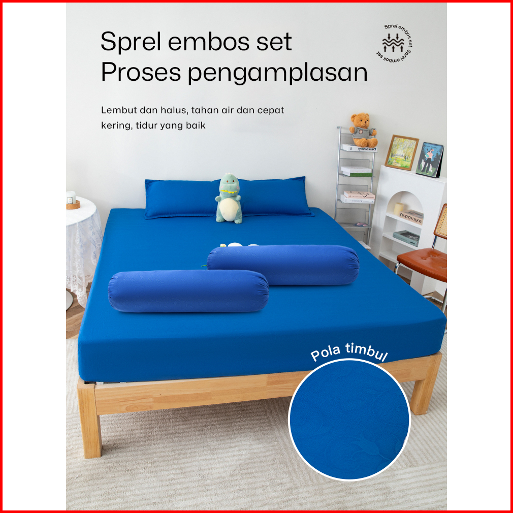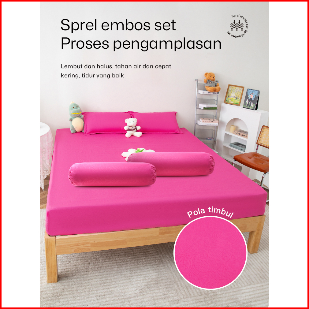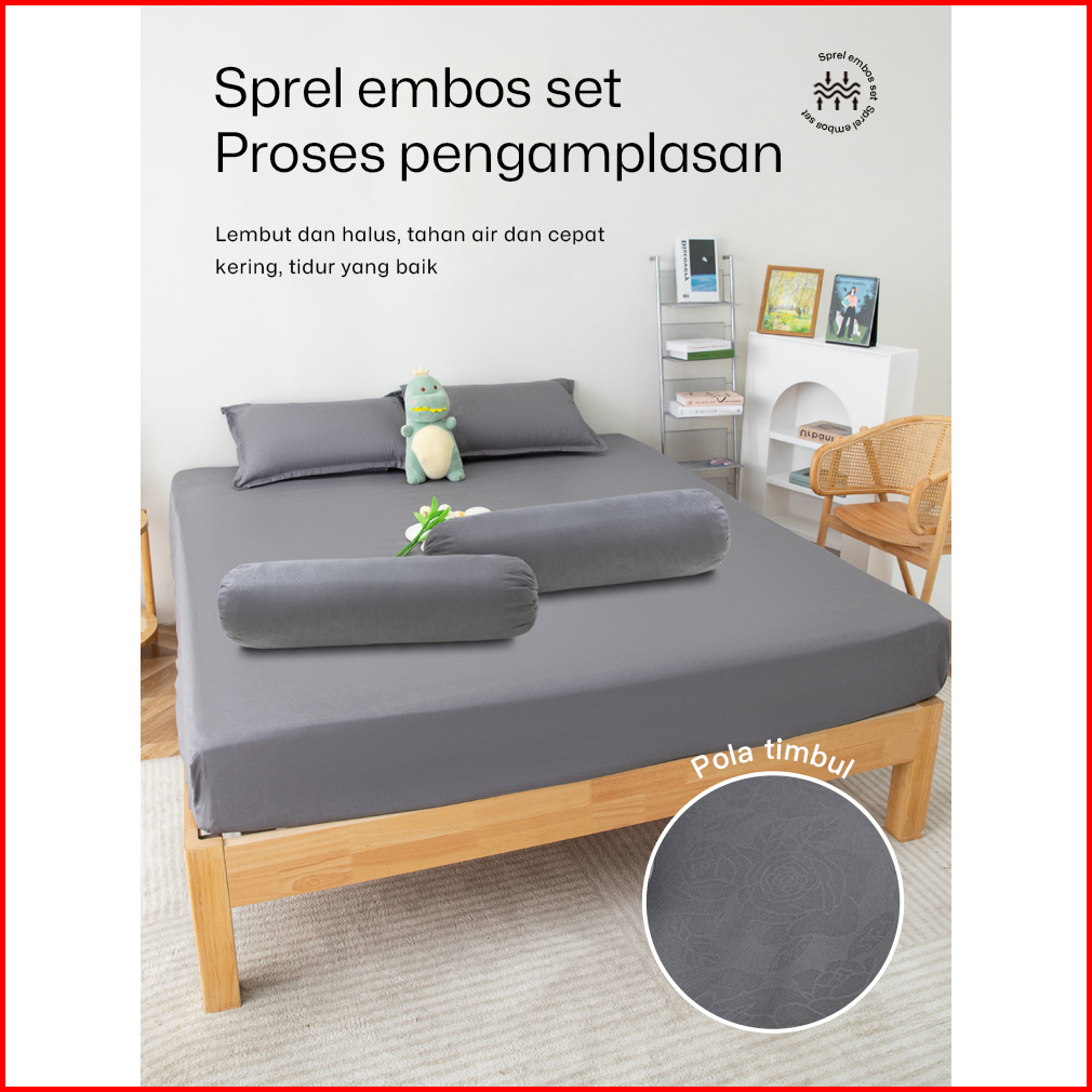 Sprei Embos Set Terbaru Bahan Polyester Pola Timbul Karet 4 Sisi